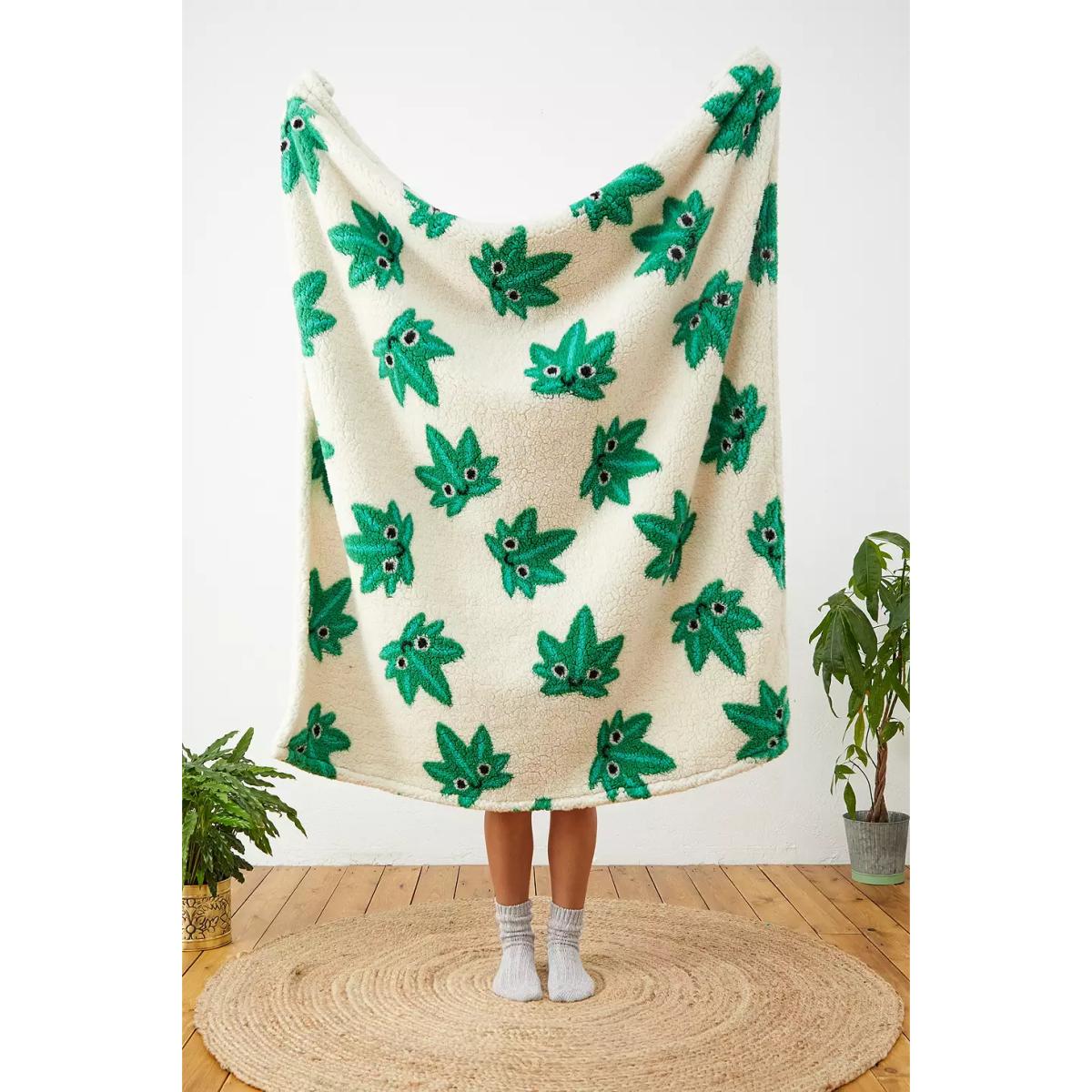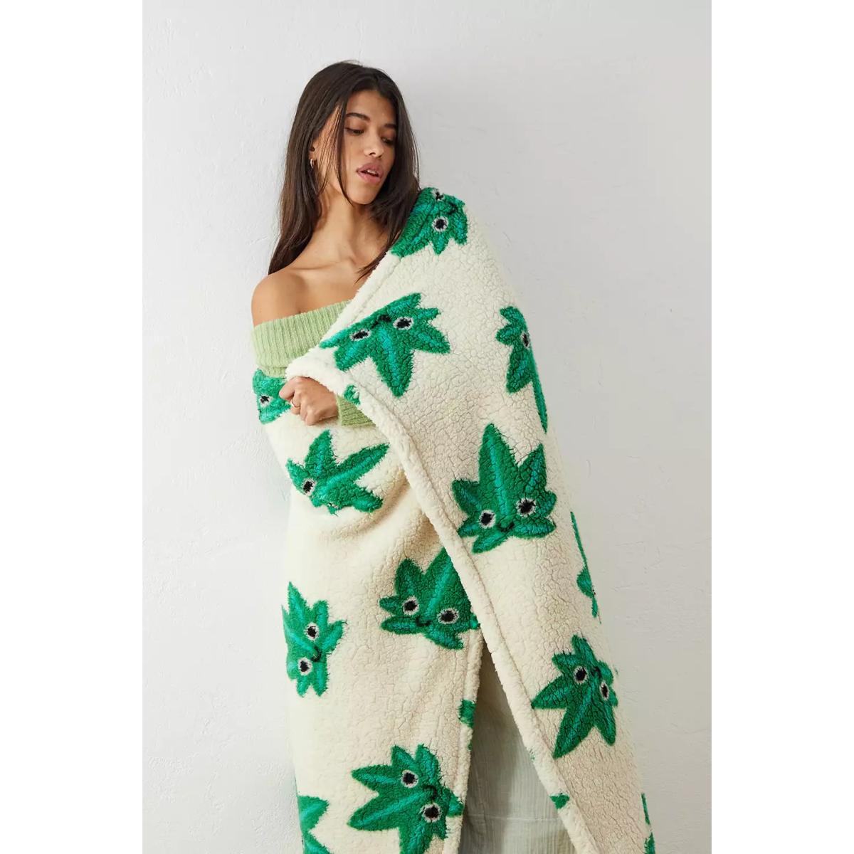 Urban Outfitters Leafy Buddy Fleece Blanket - Green ALL
