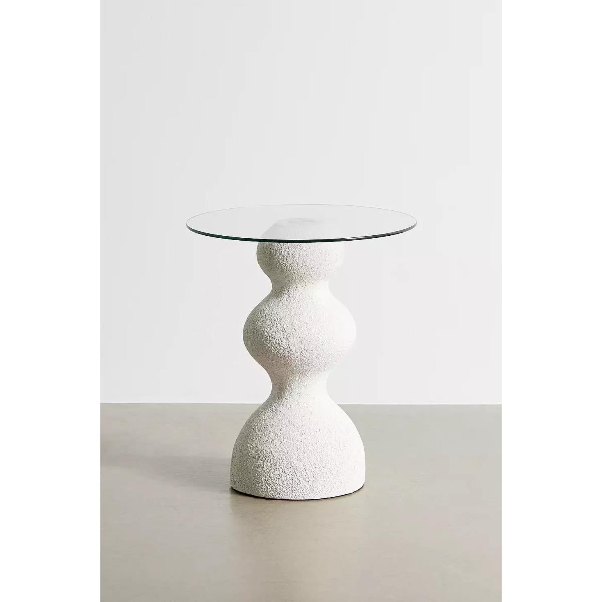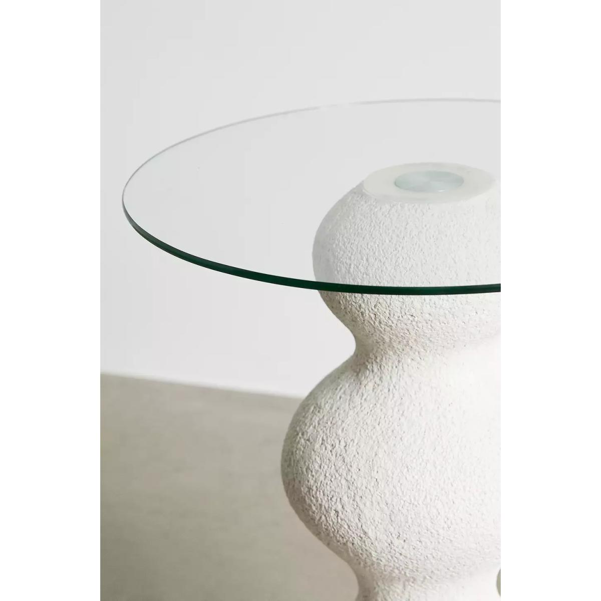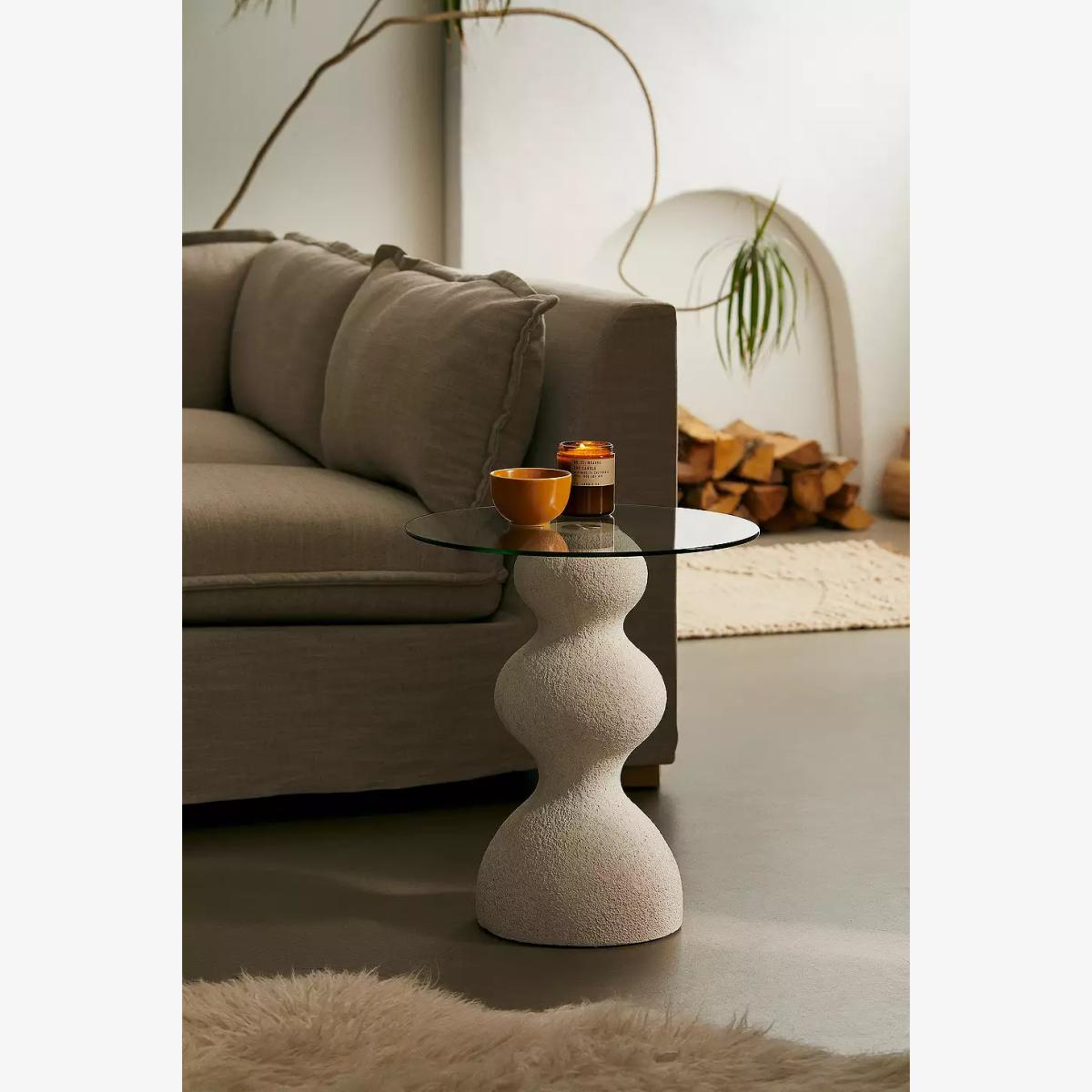 Add something entirely unique to your space with this concrete base side table. Designed with a contemporary sculpture style to wavy base and topped with a round glass top for storing all of your favourite things. **Content + Care** \- Assembly required - instructions and hardware included \- Concrete, Glass \- Wipe clean **Size** \- Dimensions:Dia: 43.1cm x H: 49cm \- Leg height: 49cm \- Weight: 23.15 lbs Ships in 2 packages \- Shipping package 1 dimensions: L: 56cm x W: 51cm x H: 8cm \- Shipping package 1 weight:7.05 lbs \- Shipping package 2 dimensions: L: 57cm x W: 41cm x H: 52cm \- Shipping package 2 weight: 16.09 lbs