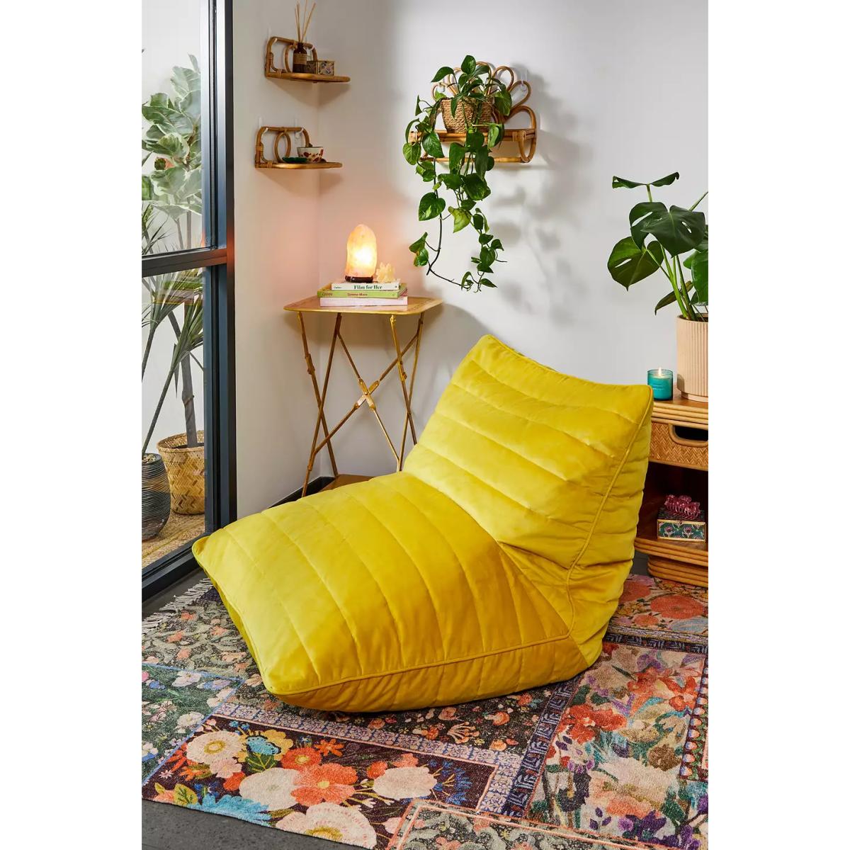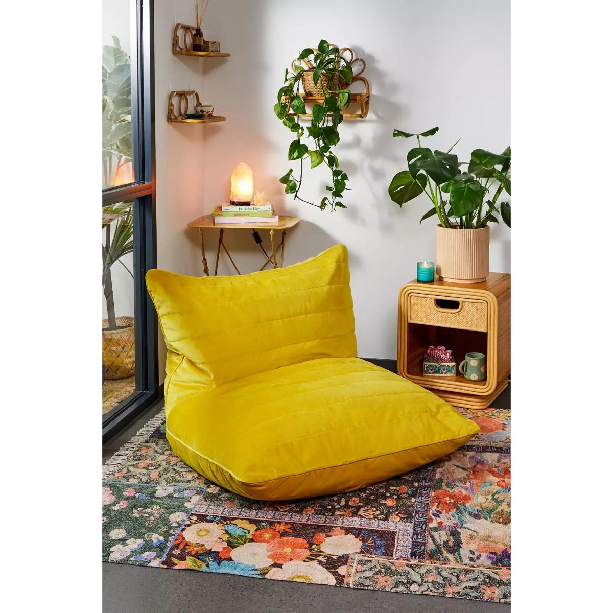 Collapse into a comfy velvet bean bag when chilling and relaxing in your space. Features a rectangular silhouette with a solid, cushioned base and a no-arms silhouette. Finished with a pintucked finish. Exclusive to UO. *Online return only. This item cannot be returned instore. Please note furniture items currently cannot be shipped to Northern Ireland or The Republic of Ireland. Delivery of large furniture items may take 2-3 weeks and are therefore not eligible for Next Day Delivery.* **Content + Care** \- 100% Polyester \- Spot clean \- Bean bag comes pre-filled with beans **Size** \- Shipping container: 97cm x 88cm x 60cm