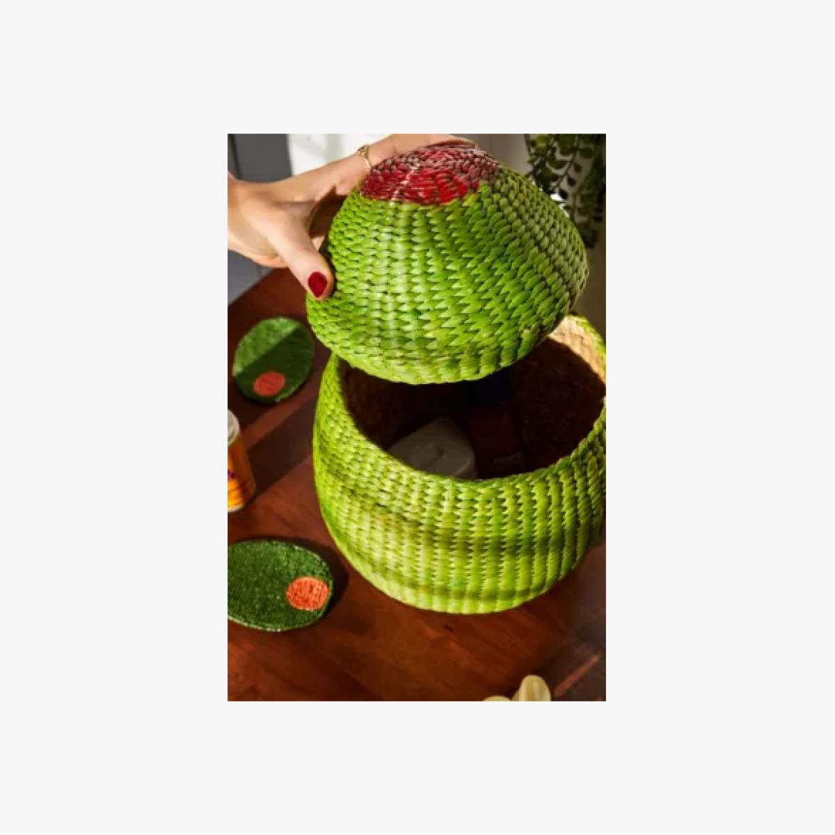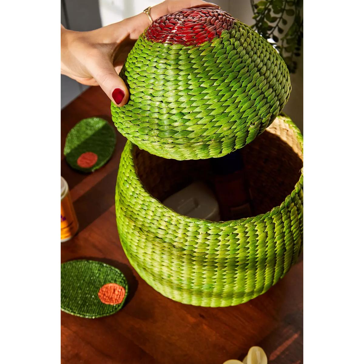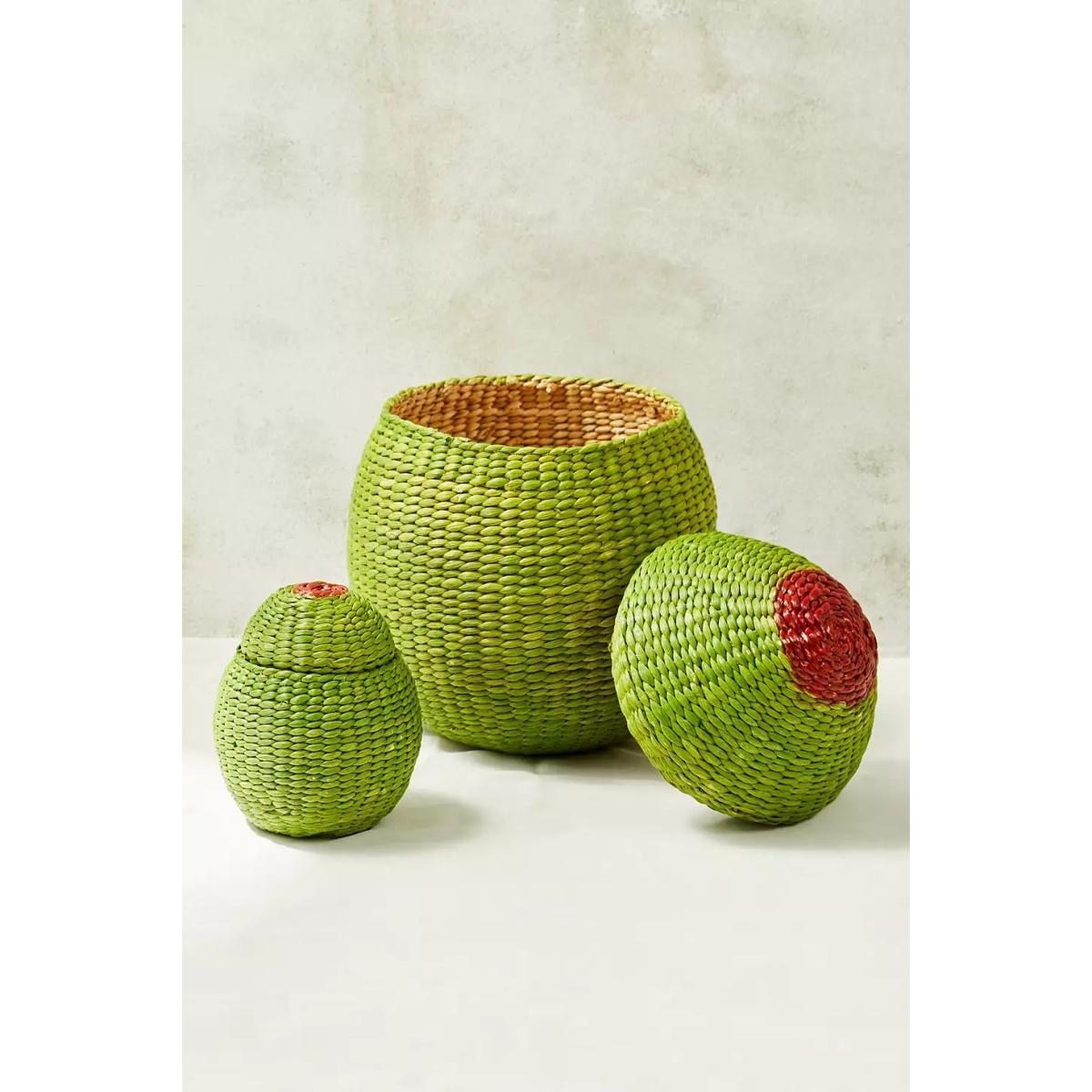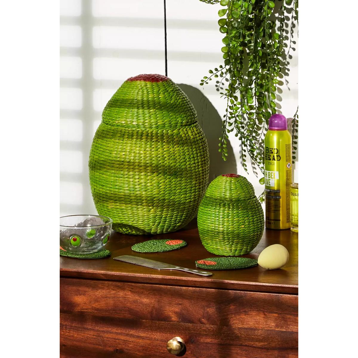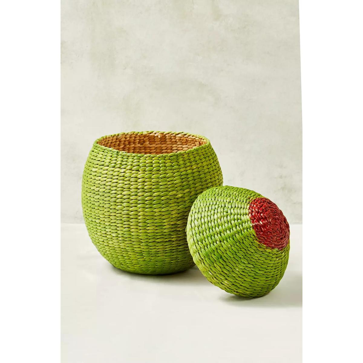Stow away bits and bobs in this adorable olive-style storage pot. The woven seagrass pot features a removable lid painted to represent a stuffed olive, complete with a hollowed out base for storing small things. **Content + Care** \- Seagrass \- Wipe clean