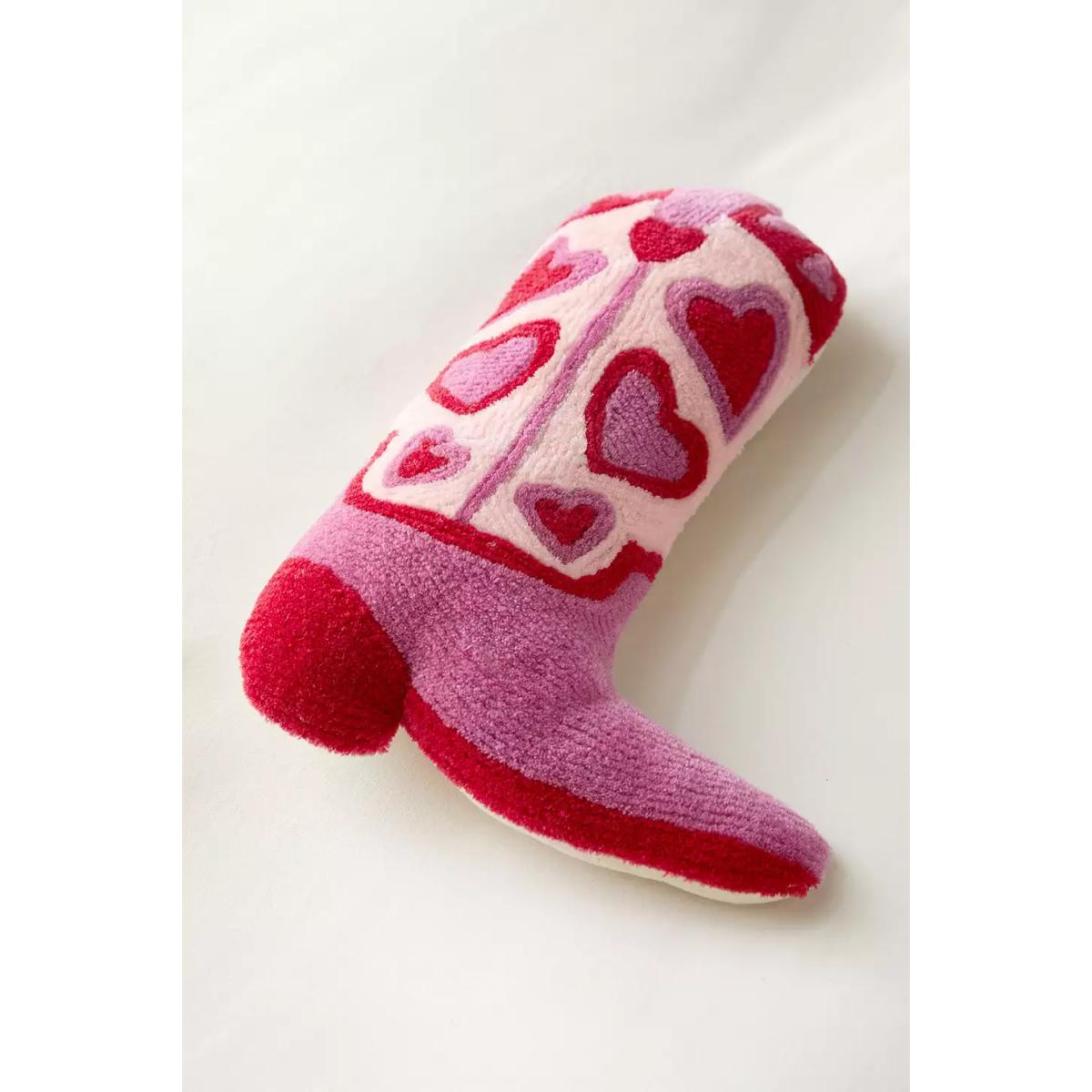 Add a kitsch touch to your space with this cowgirl boot throw pillow. Crafted from a tufted fabrication in a cowgirl boot design Ft. love heart motifs throughout. Complete with a soft cushiony filling. **Content + Care** \- Main: 100% Cotton \- Filling: 100% Polyester \- Spot clean
