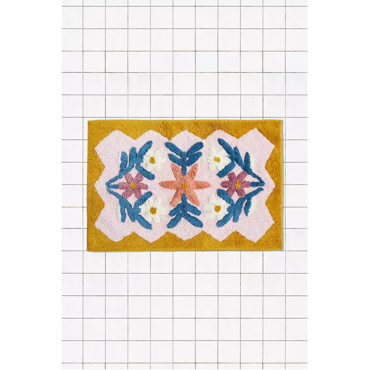Folky textures top this pretty coloured bath mat. Made for your bathroom space, the tufted bath mat features a cut-into border with floral accents to top in absorbent, tufted cotton. **Content + Care** \- 100% Cotton \- Spot clean **Size** \- L: 51cm x H: 76cm