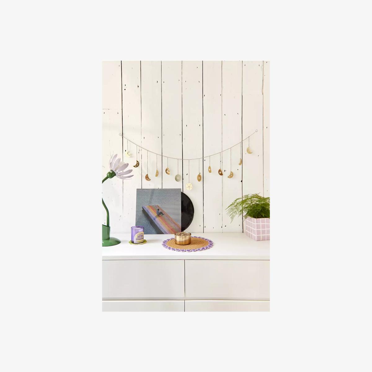 I love this moon and star wall banner for adding a subtle touch of celestial charm, especially in bedrooms or cosy nooks. Its gold finish makes it versatile, working well in both modern and boho interiors - think layered textures or minimalist schemes with metallic accents. For styling, try hanging it above a bedside table or a mantle to create a focal point without overwhelming the space. You could also complement it with softer tactile elements like plush cushions or textured throws to enhance the cosy vibe. Keep it fairly simple around it to let the metallic shimmer stand out-perfect for adding a touch of whimsy and elegance to your room.