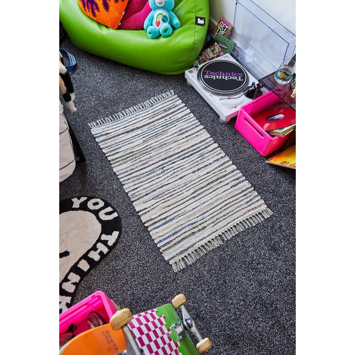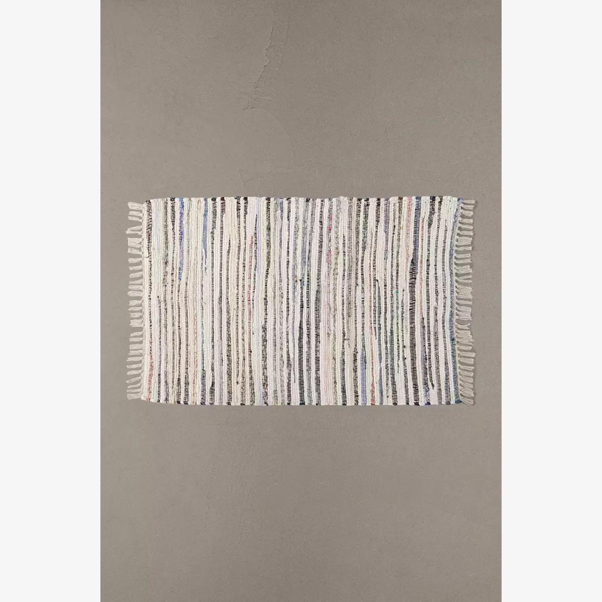 Hand-woven rug in tonal stripe detailing, perfect for adding a monochrome finish to your space. With a boho vibe, the rug features textured striped detailing and tassels on each side. **Content + Care** \- 58% Cotton, 39% Polyester, 3% Viscose \- Spot clean **Size** \- 61cm x 91.5cm (2ft x 3ft)