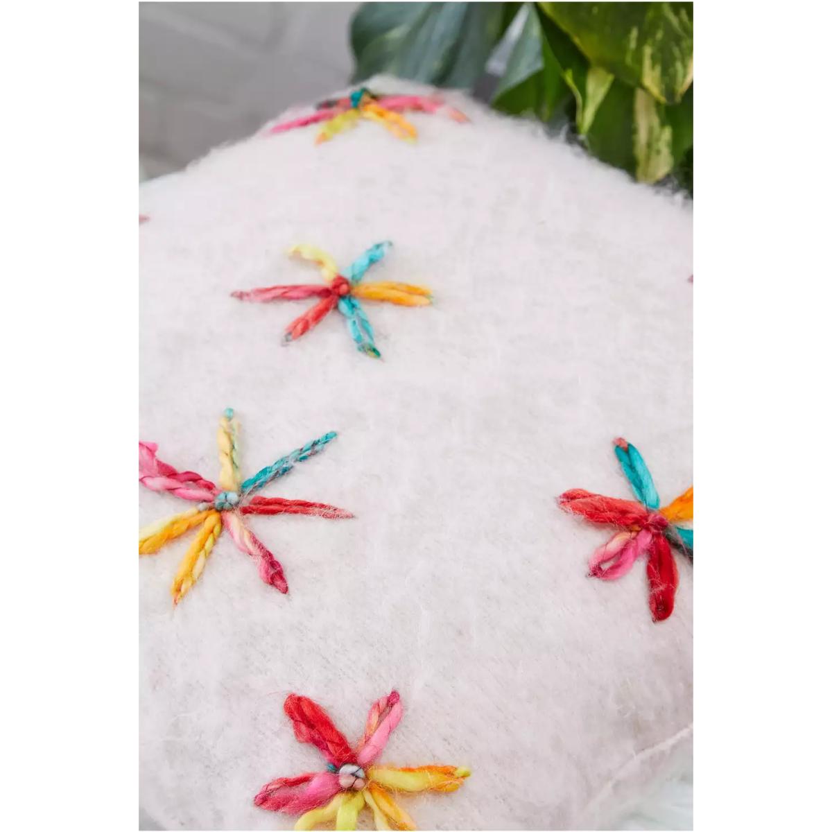 Decorate your space with a soft fleecy cushion and brightly coloured thread detailing. Square cushion with embroidery on one side and a plush filling. **Content + Care** \- 100% Acrylic \- Filling: 100% Polyfill \- Spot clean
