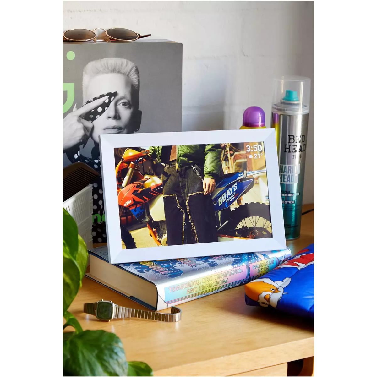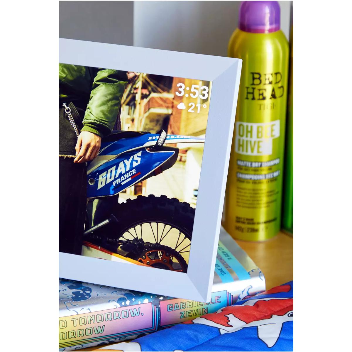 Put all of your favourite digi camera or Smartphone pics on display with this digital frame by Pixie. A real 00s throwback, the digital frame allows you to upload pictures directly, display shots from an SD card or connect to Wi. Fi. The Pixie is compatible with iO. S and Android via an app, allowing you to easily add photos from a phone or tablet. Complete with a remote to pick which pic you want to display and an on-screen clock and calendar for added functionality. **Content + Care** \- Plastic, LED \- Wipe clean \- Compatible with iO. S & Android via an app **Size** \- 16.9cm x 25cm