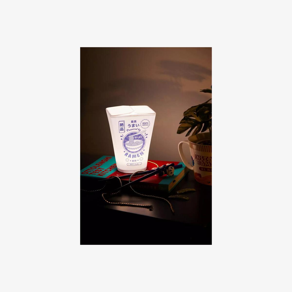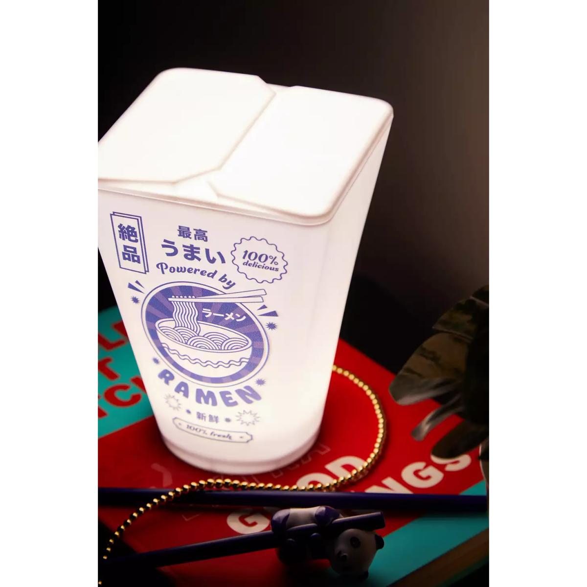 Create a groovy space for your takeaway night-in with this ramen packet lamp. The portable light is battery-powered for use in whichever space you need, complete with a takeaway carton design with a 'Powered by Ramen' slogan printed on. **Content + Care** \- Plastic \- Wipe clean \- Required 3 x AAA batteries (not included)