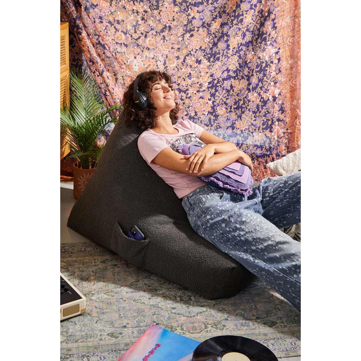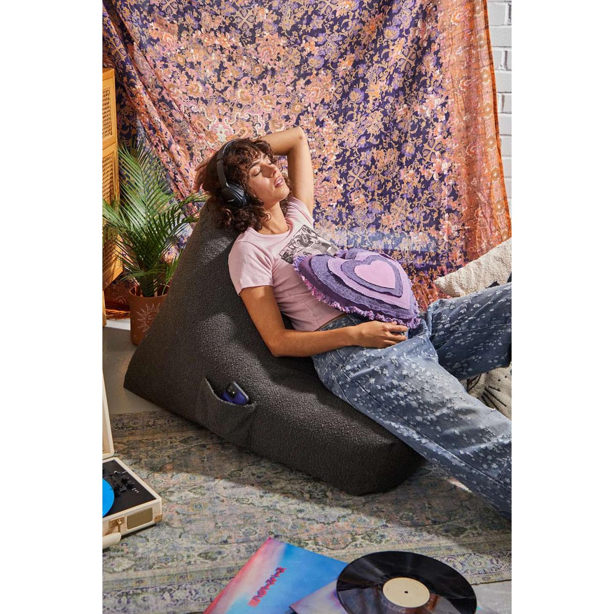 Soft boucle bean bag in a laid-back, relaxed silhouette. Perfect for your space, this bean bag features a grab handle and a side pocket for repositioning and storing your phone during movie or gaming time. Exclusive to UO. *Online return only. This item cannot be returned instore. Please note furniture items currently cannot be shipped to Northern Ireland or The Republic of Ireland. Delivery of large furniture items may take 1-2 weeks and are therefore not eligible for Next Day Delivery.* **Content + Care** \- 100% Polyester - Spot clean - Bean bag comes pre-filled with beans **Size** \- Product dimensions: 97cm x 80cm x 78cm- Shipping container: 79cm x 71cm x 45cm