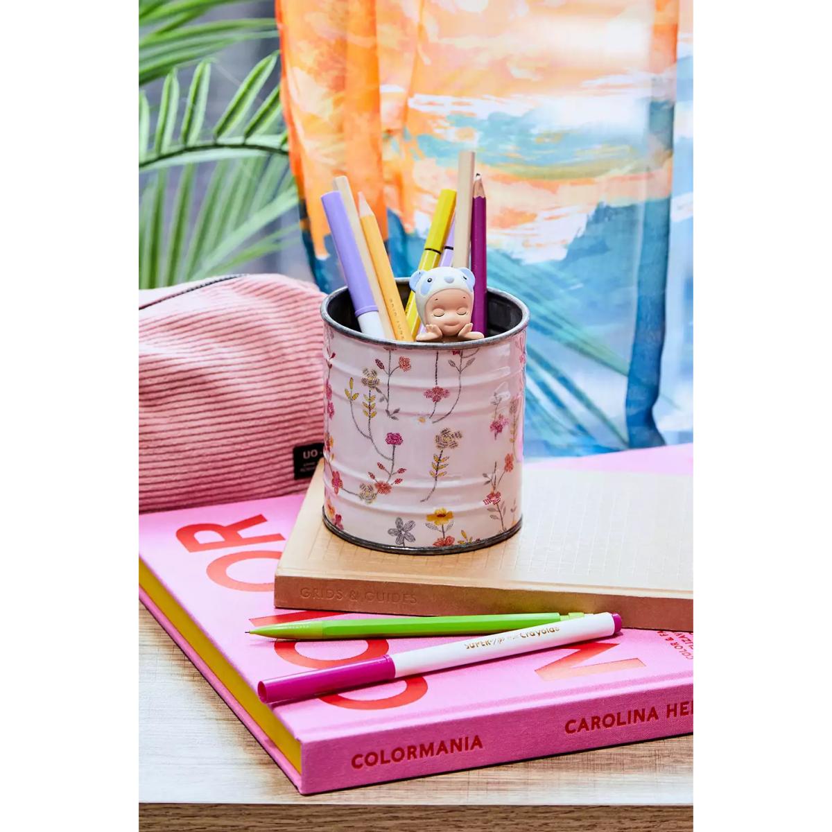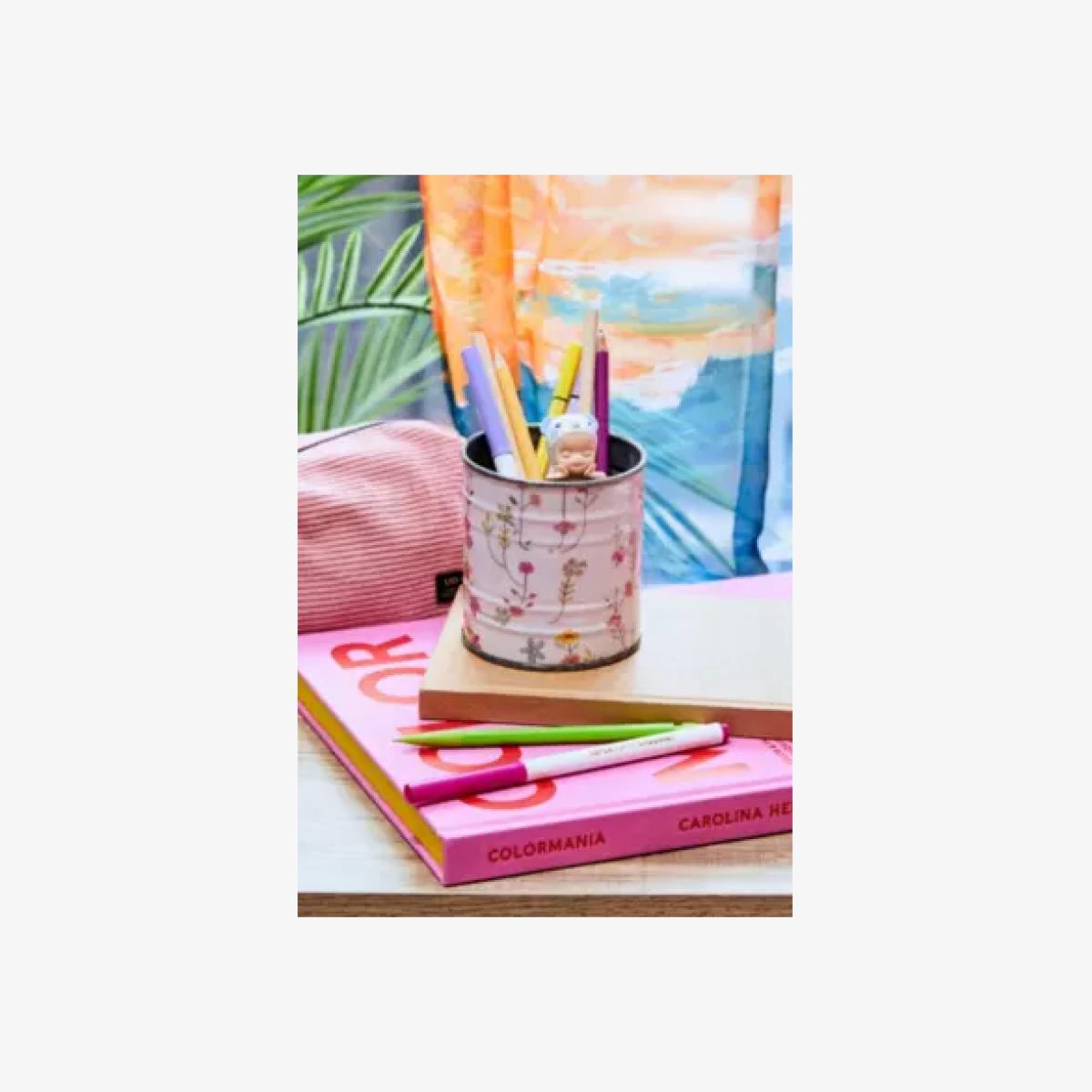 Create additional storage on your desktop or dressing table with this metal tin. Featuring a kitsch floral print that wraps around, the tin is perfect for storing makeup brushes or stationery as required. **Content + Care** \- Iron \- Wipe clean