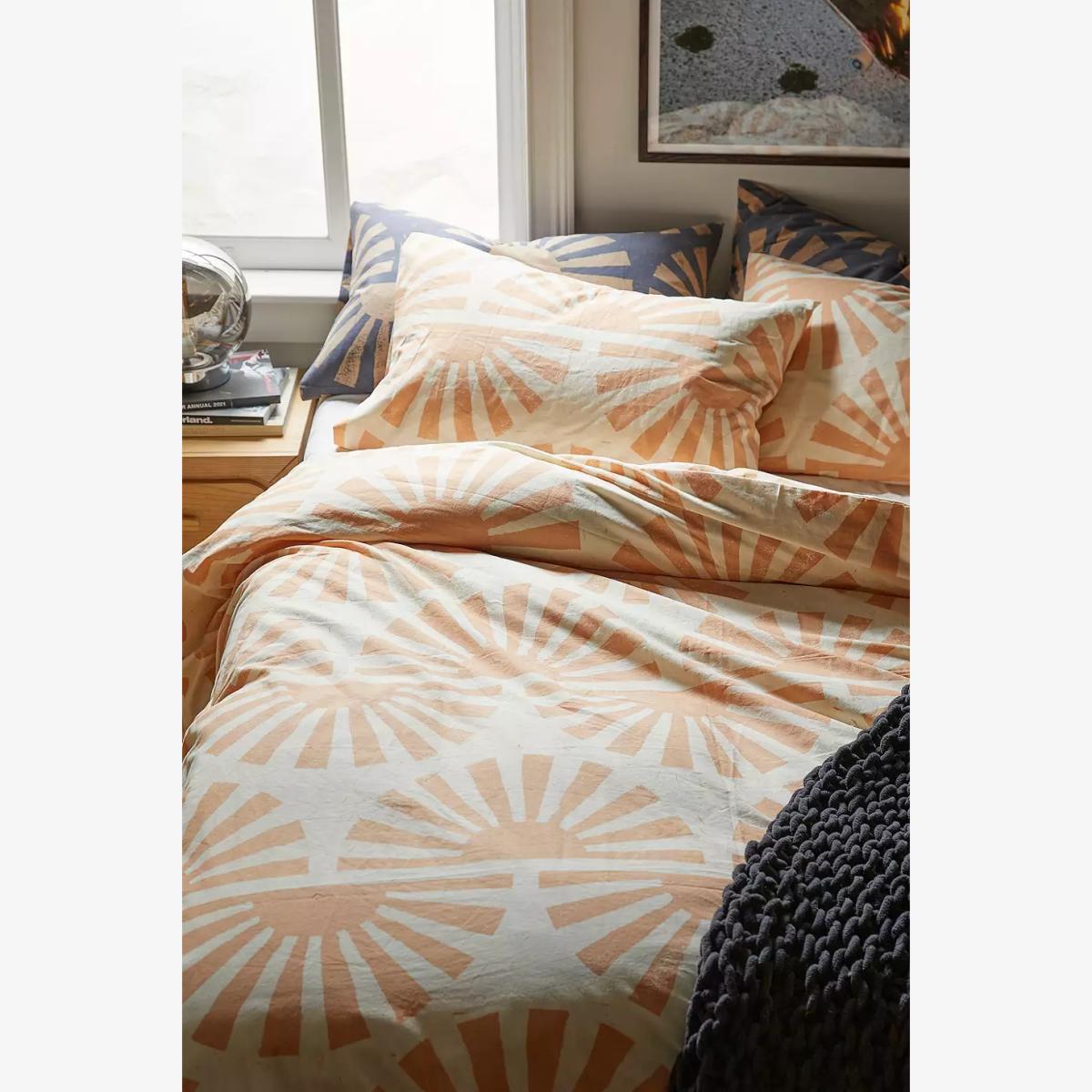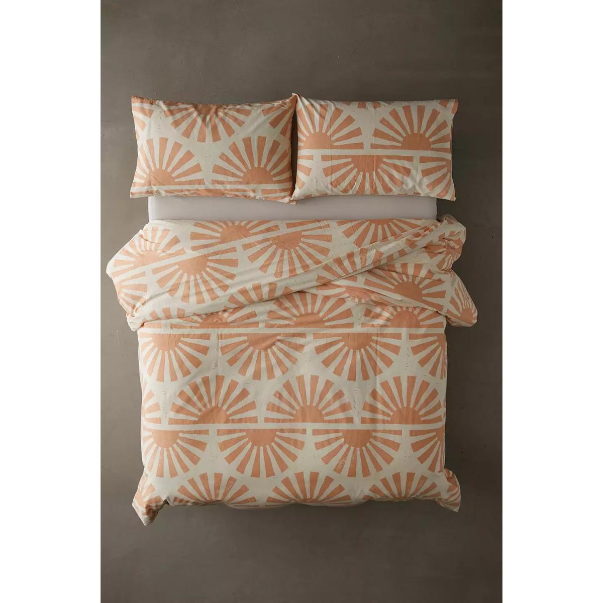 Bold sunrise motifs top this duvet set with duvet cover and matching pillowcases. Features a geometric sun motif repeat printed all over, crafted from soft woven cotton. **Content + Care** \- 100% Cotton \- Machine wash **Size + Fit** \- Single (includes 1 pillowcase): 135cm (W) x 200cm (H) \- Double (includes 2 pillowcases): 200cm (W) x 200cm (H) \- King (includes 2 pillowcases): 230cm (W) x 220cm (H) \- Pillowcase: 75cm x 50cm