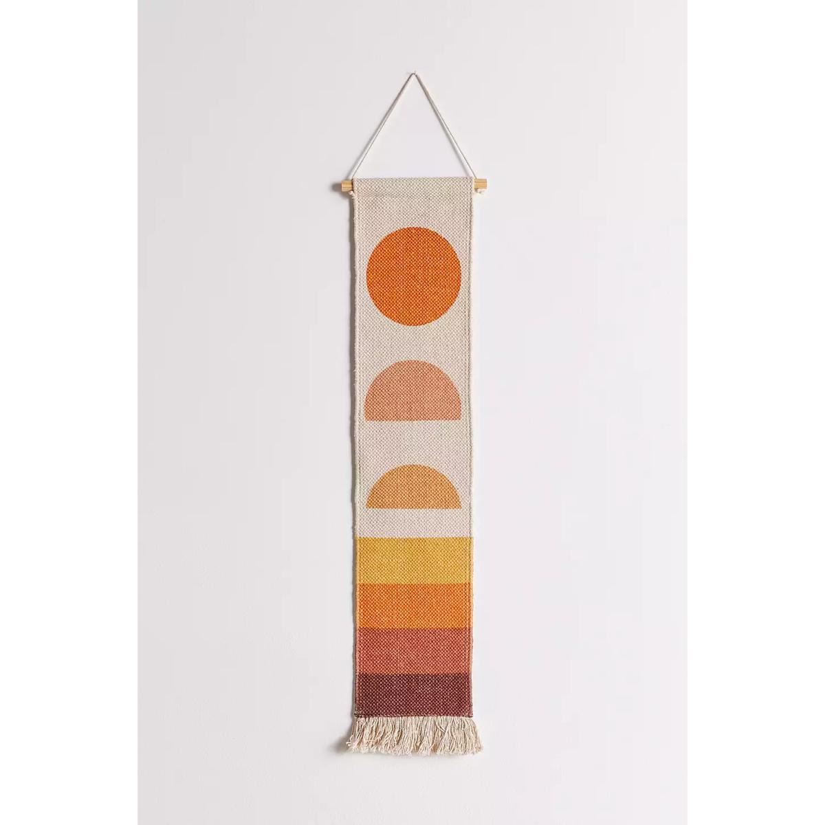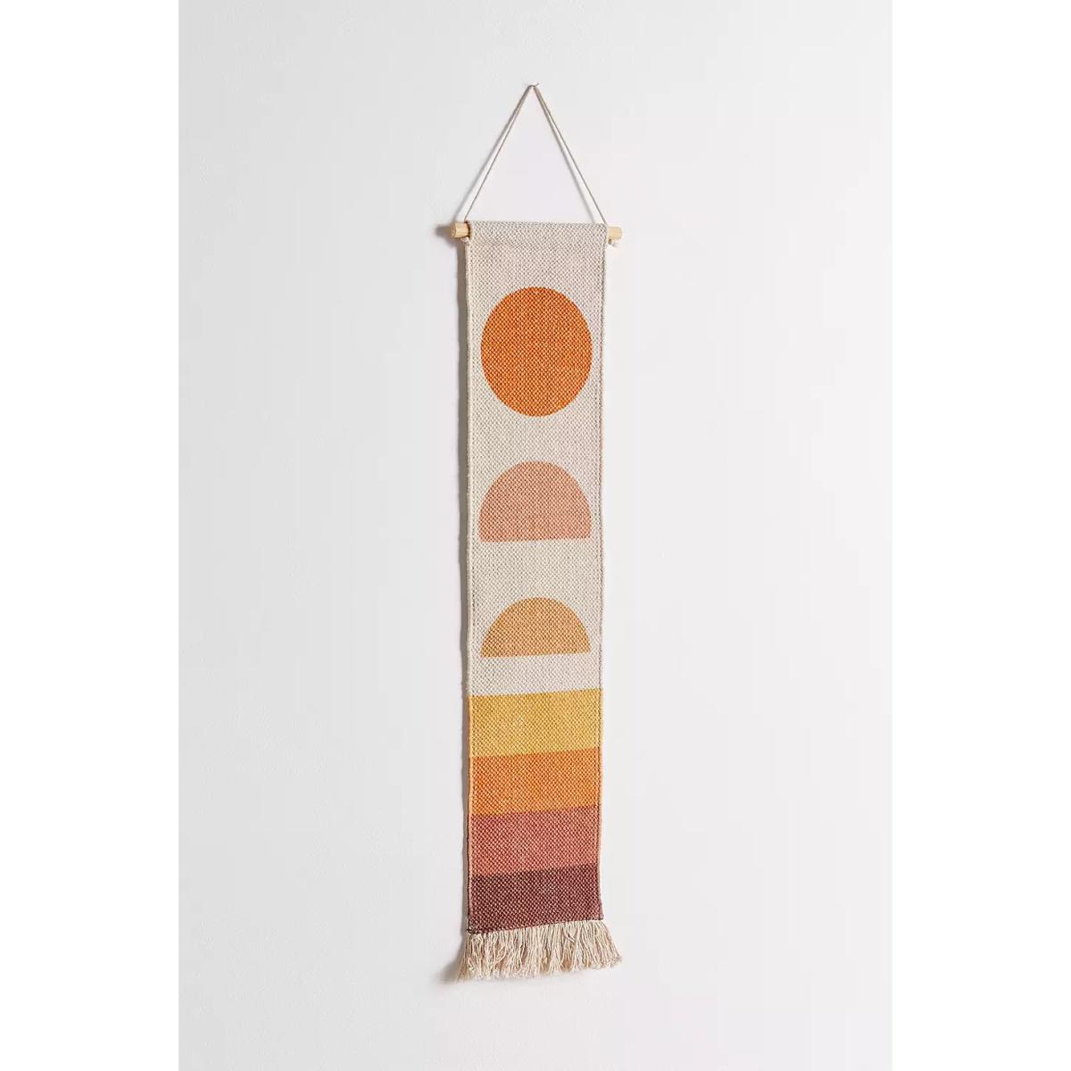 Add additional textures to your home with this canvas wall hanging. Features a geometric setting sun design with a tassel finish to the bottom. Finished with a pinewood top and cotton thread for easy hanging. **Content + Care** \- Cotton, Pine Wood \- Spot clean **Size** \- L: 81.2cm x W: 175.2cm