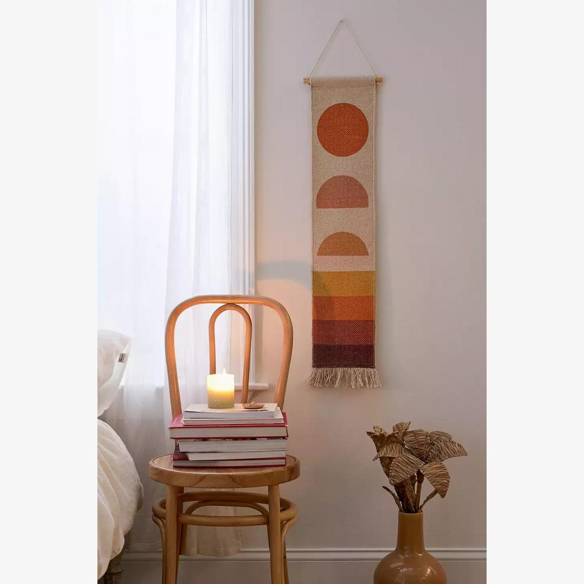 I love this sunset wall hanging for its bold, warm tones that instantly add colour and personality to a space. It works particularly well in modern or boho interiors, where its graphic yet soft design can serve as a focal point. To style it effectively, consider pairing it with neutral walls and layered textures-like woven baskets or linen cushions-to create a balanced look. Practical tip: hang it at eye level or slightly above furniture for maximum impact, and keep surrounding accessories minimal to let the artwork really stand out. It’s a versatile piece that can brighten up a bedroom, living room, or hallway with minimal effort.