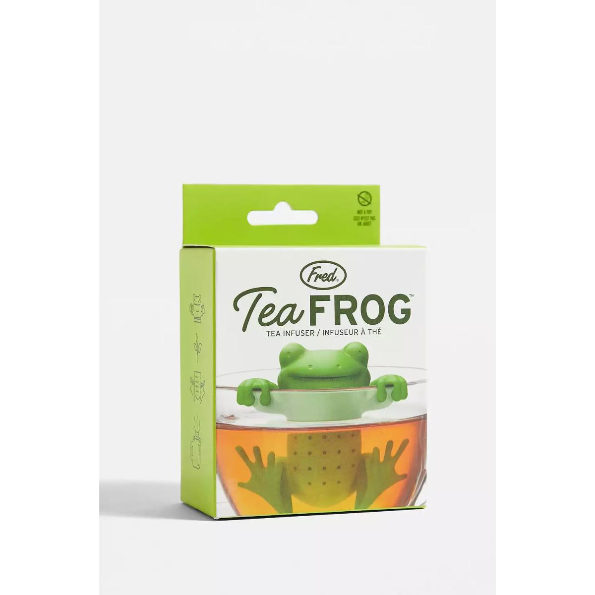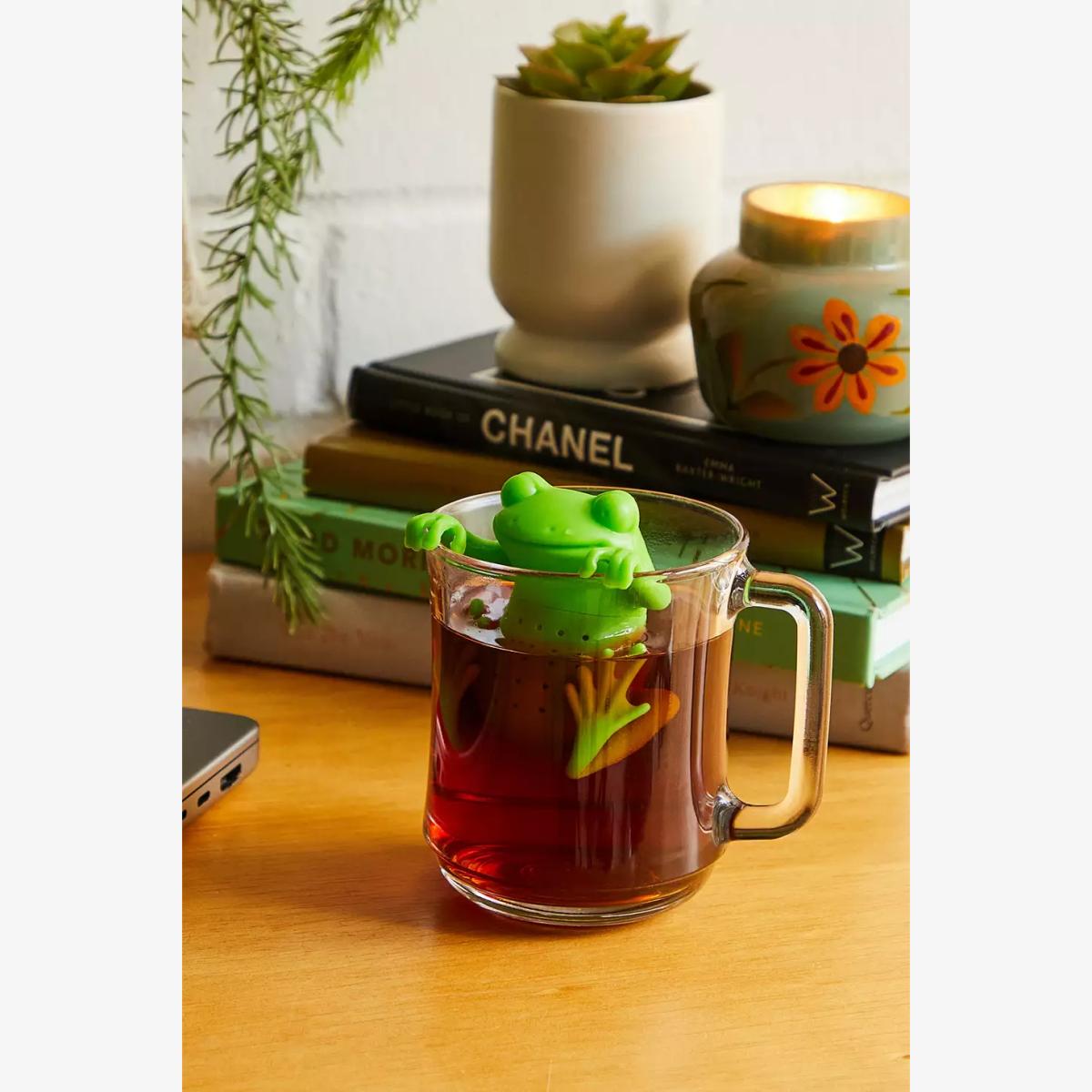 Let this froggy friend brew your tea. The silicone frog feature sits on the edge of your mug with your favourite loose-leaf tea inside to slowly infuse the boiling water. A great alternative to single-use tea bags, the froggy is made from food-safe, heat-resistant, BPA-free silicone that won't taint the flavour of your tea. **Content + Care** \- BPA-free silicone \- Hand wash \- Food safe