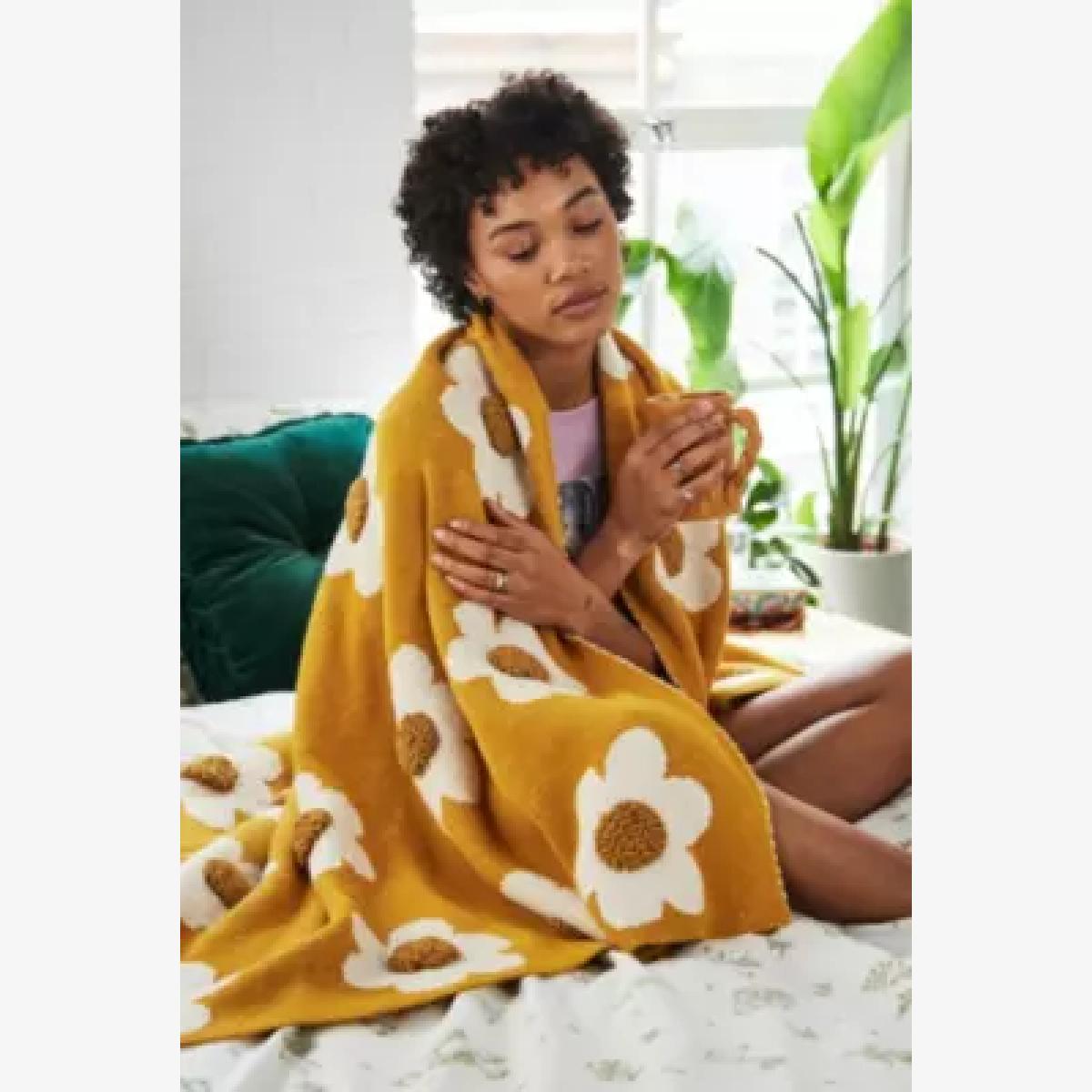 Urban Outfitters Tufted Daisy Blanket - Yellow ALL