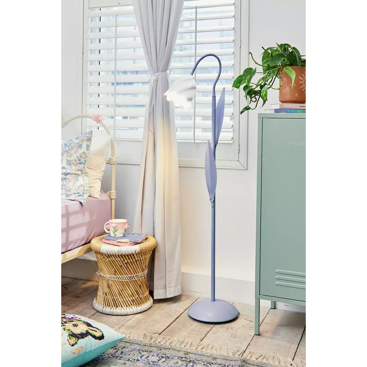 Bring floral gardens to your lighting with this tulip floor lamp. Complete with a tulip-shaped shade and a leafy stem base crafted from metal. Plugs in to power on. **Content + Care** \- Iron \- Wipe clean \- Requires one E26 Type A 60W LED Bulb - not included **Size** \- Dimensions: W: 40.6cm x H: 160cm \- Wattage/Voltage: 60W/120V \- Cord length: 7 ft, switch is 2 ft from base \- Weight: 12.6 lbs