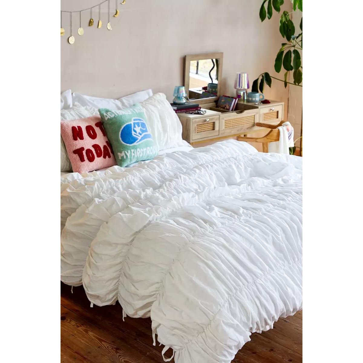 Get cosy in this super soft cinched bedding. Crafted from a cosy cotton, this matching duvet and pillowcase set is complete with ruched detailing. **Content + Care** \- 100% Cotton \- Machine wash **Size** \- Double (includes 2 pillowcases): 200cm (W) x 200cm (H) \- King (includes 2 pillowcases): 230cm (W) x 220cm (H) \- Pillowcase: 75cm x 50cm