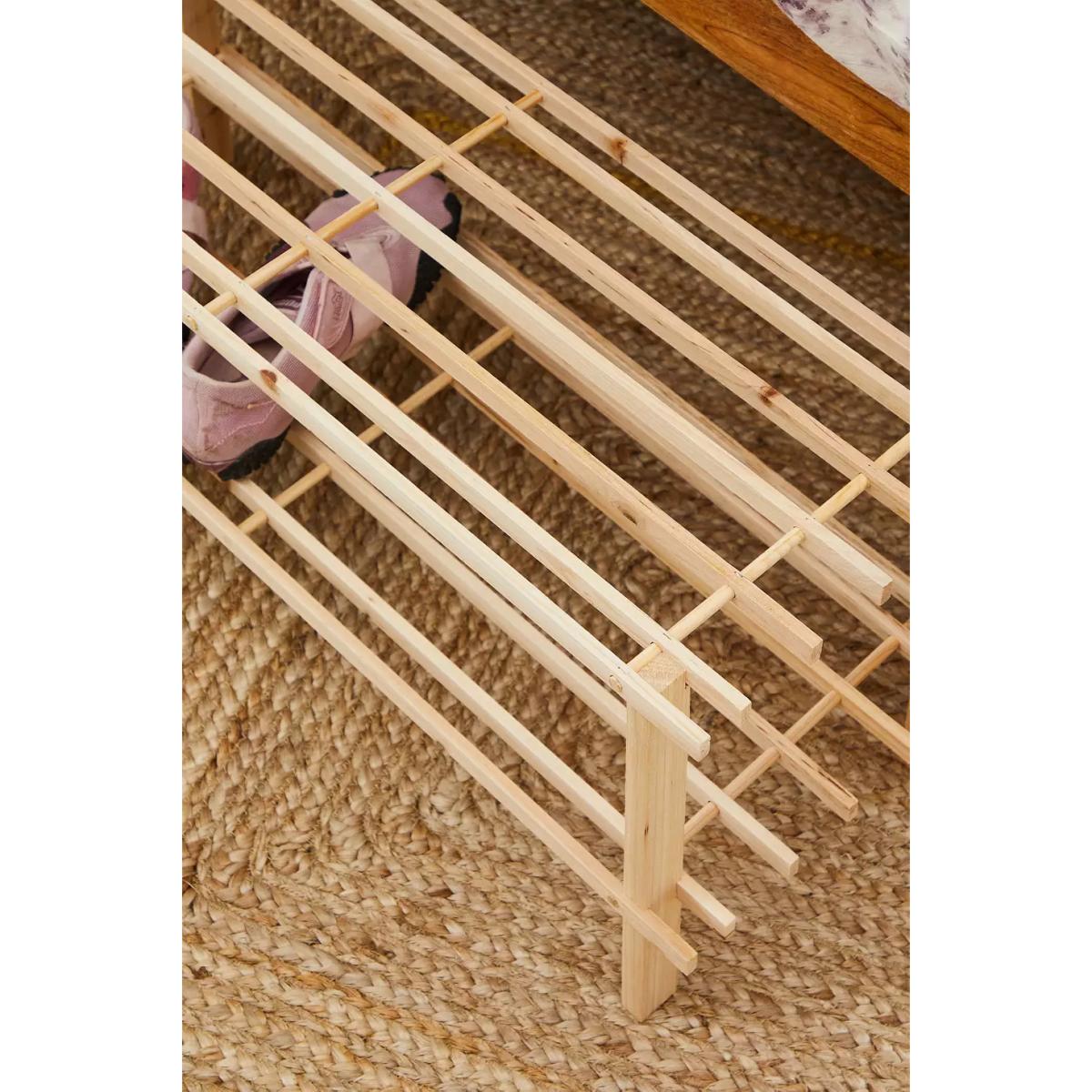 Organise your shoes with this handy wooden shoe rack, a simple addition to your hallway space or bedroom. Features two wooden slatted shelves in a narrow silhouette. **Content + Care** \- Wood \- Wipe clean **Size** \- H: 30cm x W: 74cm x D: 26cm