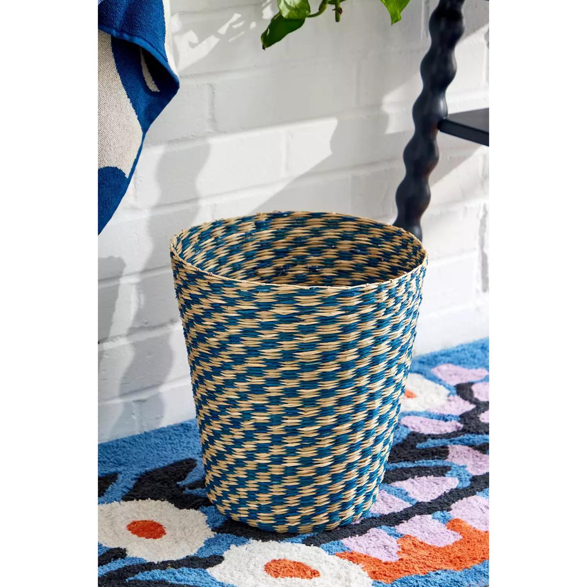 Urban Outfitters Woven Seagrass Paper Bin - Blue ALL
