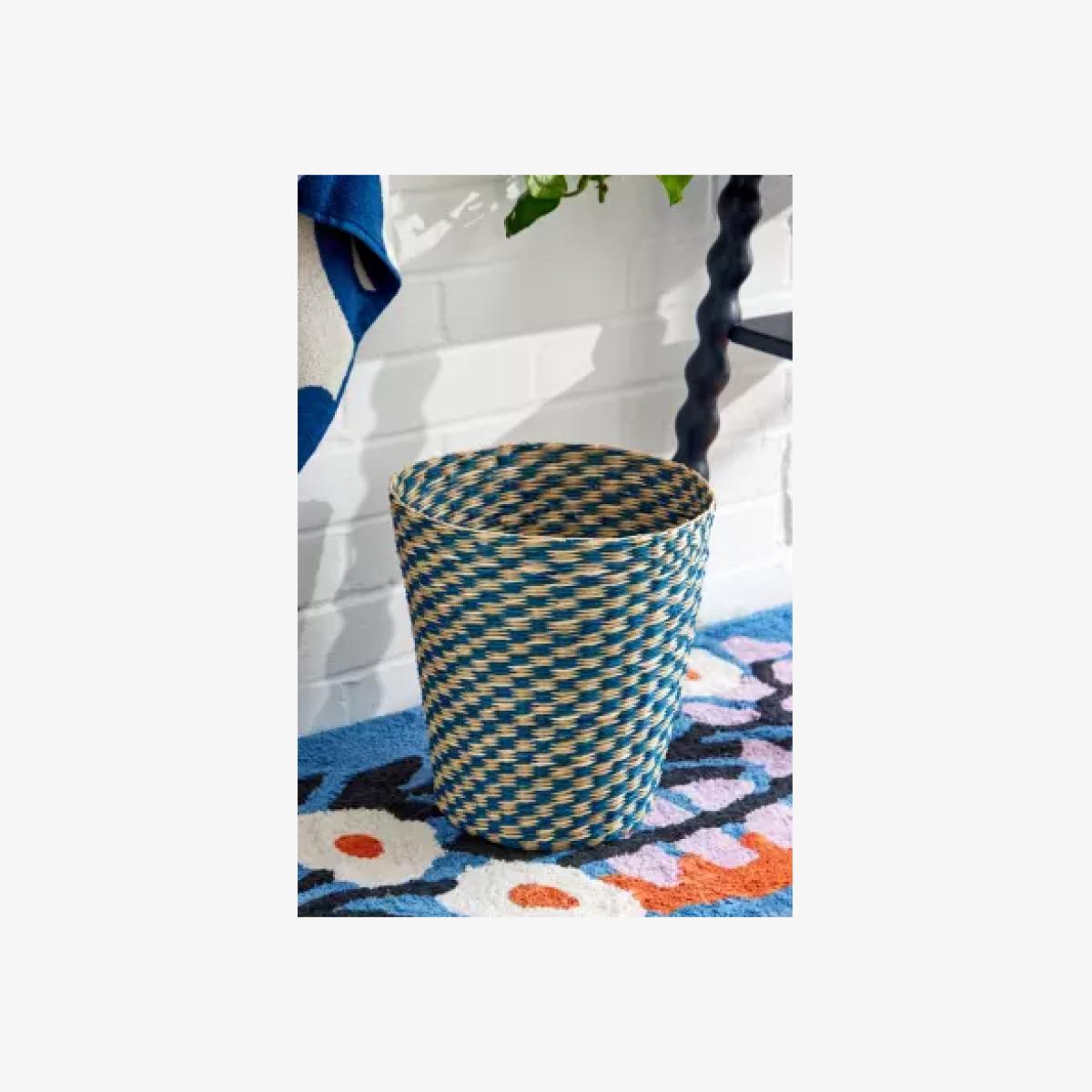 I love this bin because it adds a natural, handmade touch to any space with its woven seagrass texture and cheerful blue hue. It’s incredibly versatile and works well in relaxed, coastal, or boho interiors where organic materials shine. Practical and stylish, it’s perfect for incorporating into bathroom, bedroom or living room scenes-use it as a waste bin or storage solution. For a polished look, try pairing it with similar textures or colours, and keep accessories minimal to let the woven detail stand out. It’s a functional piece that injects a touch of artisanal charm while maintaining a modern feel.