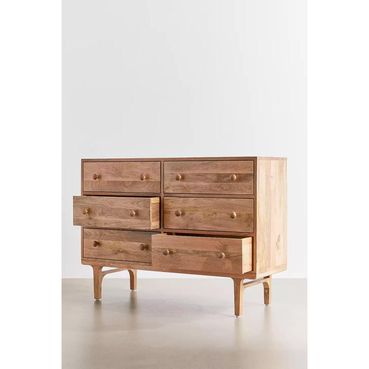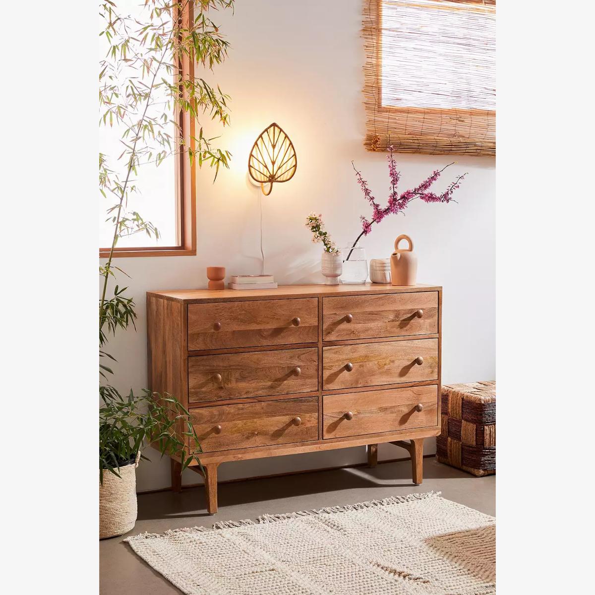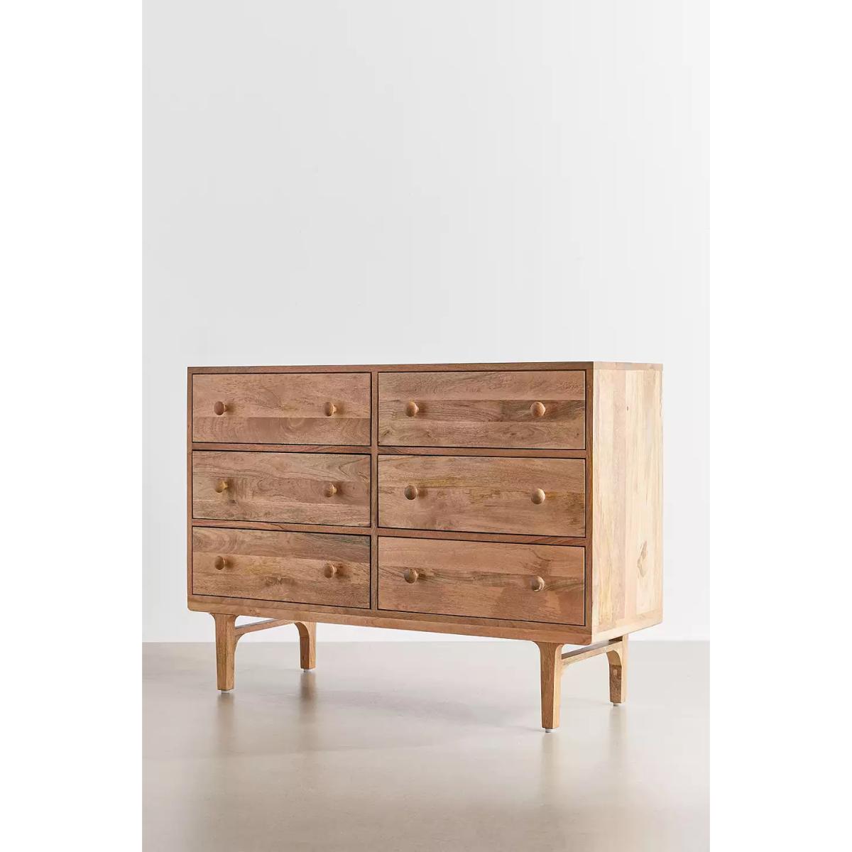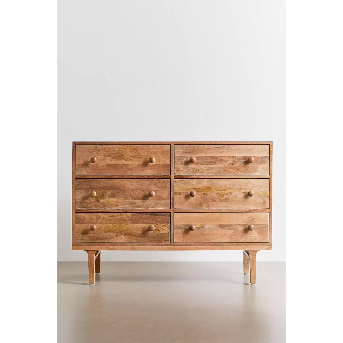 Add rustic minimalism to your space with this six-drawer dresser, part of the mango wood Wyatt collection. The sturdy dresser unit features six slide-out drawers with round drawer knobs, complete with a straight leg base and clearance space underneath. **Content + Care** \- Assembly required - instructions and hardware included. We recommend two people for assembly \- Mango wood, MDF \- Wipe clean \- Please note, this is a solid wood item that may naturally expand and contract with seasonal changes in humidity **Size** \- Dimensions: L: 135.9cm x W: 45.7cm x H: 96.5cm \- Drawer dimensions: L: 58.4cm x W: 38.1cm x H: 17.8cm \- Leg height: 25.4cm, removable \- Clearance: H: 22.6cm