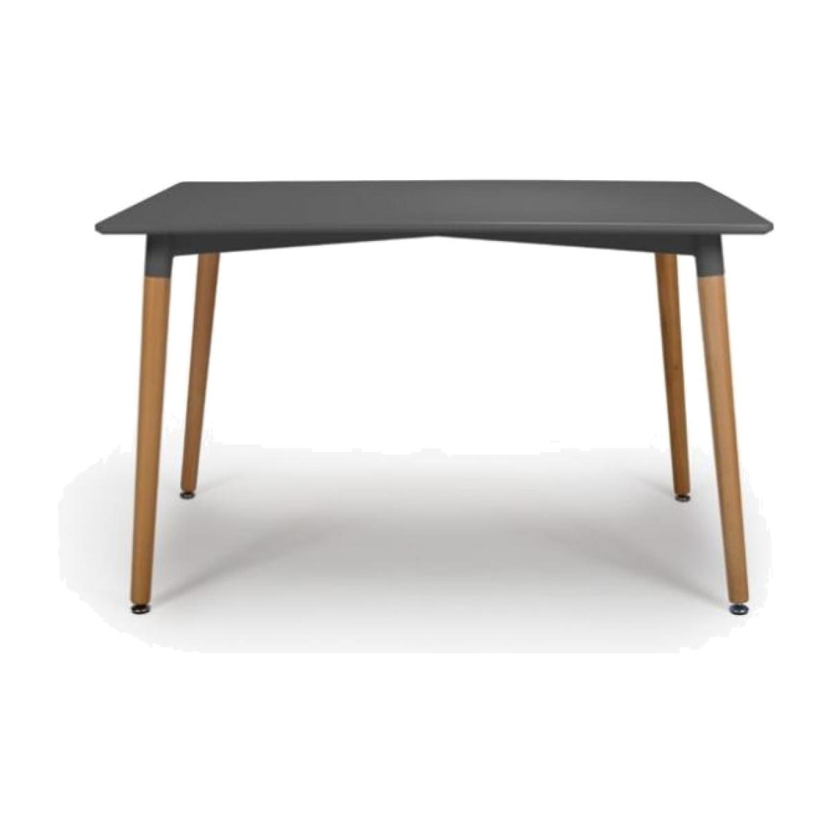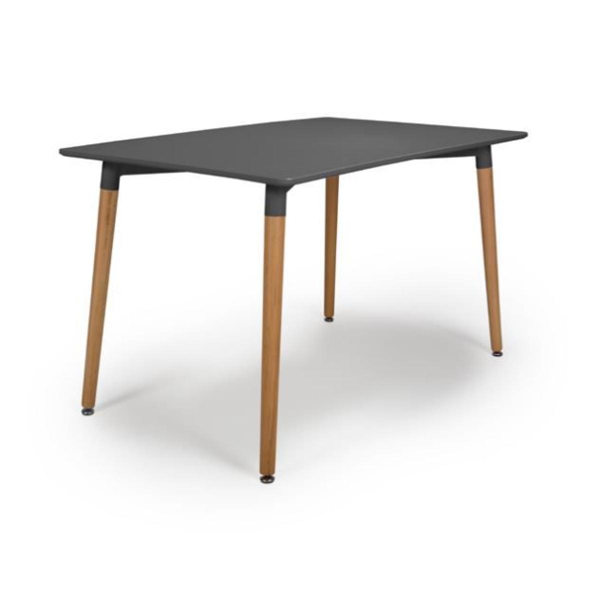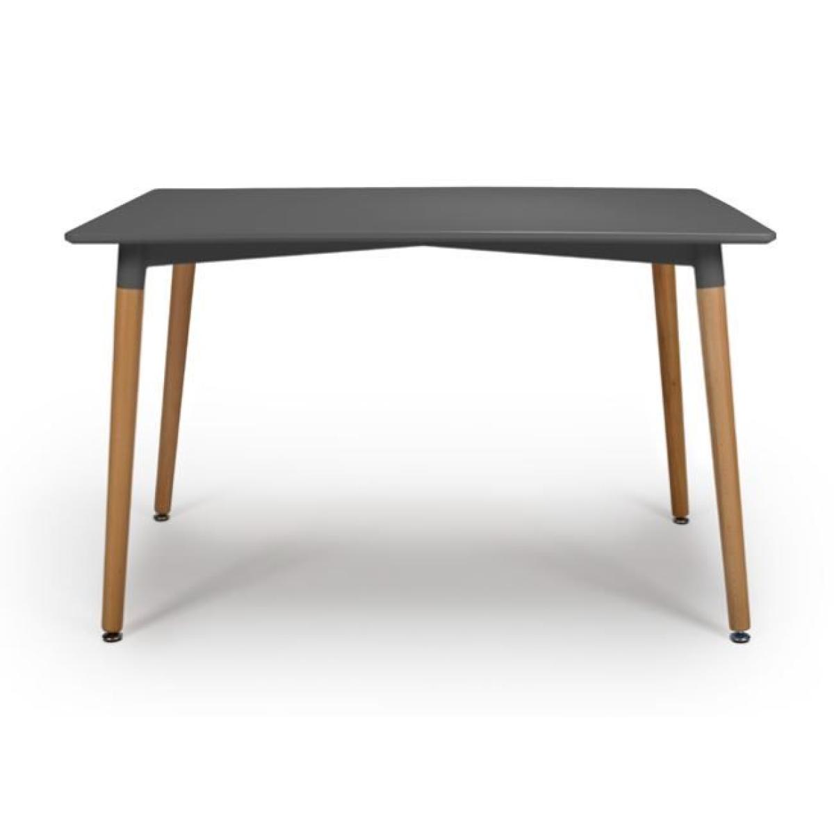 A stunning but simple rectangular table takes centre stage standing proud on its four natural slim legs with a grey top. The supporting roles are left to the imagination of the audience as a choice of six colours are available in the chairs to complement individual settings - decisions decisions! Dimensions: H 75cm x D 90cm x W 120cm MDF Top & Beech Wood Leg Assembly Required All screens vary in colour reproduction and whilst every effort has been made to display the colour as accurately as possible it is for guidance only.
