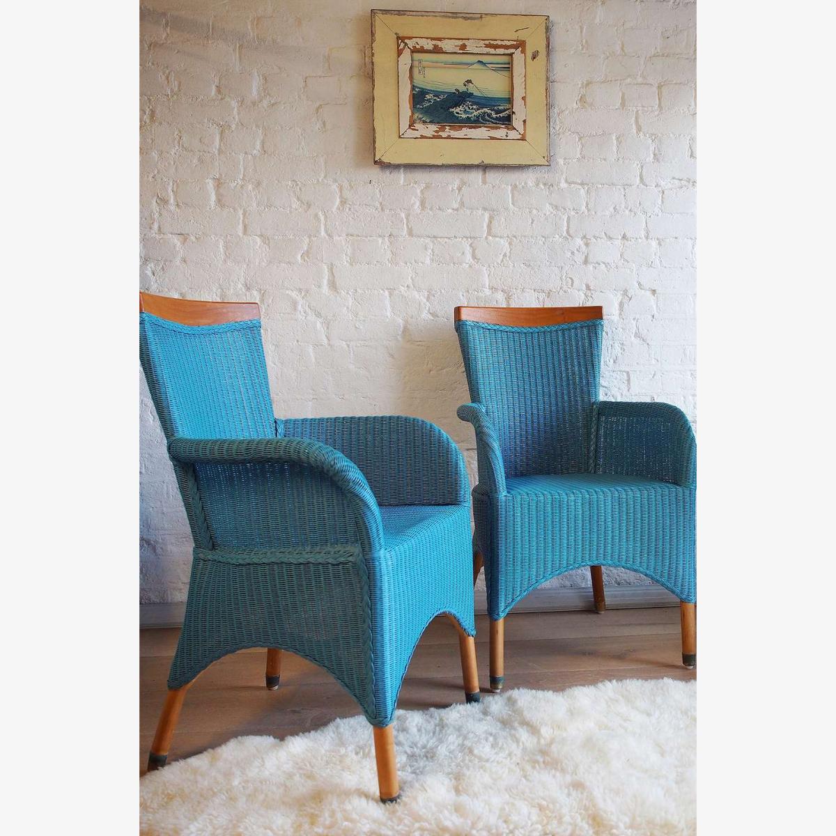 Pair of two bright and bold chairs with a teak and rattan construction. Features a straight chair back with curved armrests and teak feet. Pair with cushions and throws for a perfect addition to your mid-century interiors. *Please note: This item is not eligible for Next Day Delivery. For any large furniture, delivery can take between 1-2 weeks and we cannot deliver this outside of UK mainland. All Urban Renewal Vintage homeware is non-returnable. * **About Urban Renewal Vintage** \- One-of-a-kind pieces sourced by the vintage furniture experts at Originall Creations \- Authentic, pre-loved vintage pieces which are sold as seen and therefore may show signs of wear and tear \- This item will be dispatched by the vendor and may take longer to process than other items in your order **Content + Care** \- Teak, Rattan \- Wipe clean **Size** \- 93cm x 58cm x 55cm each