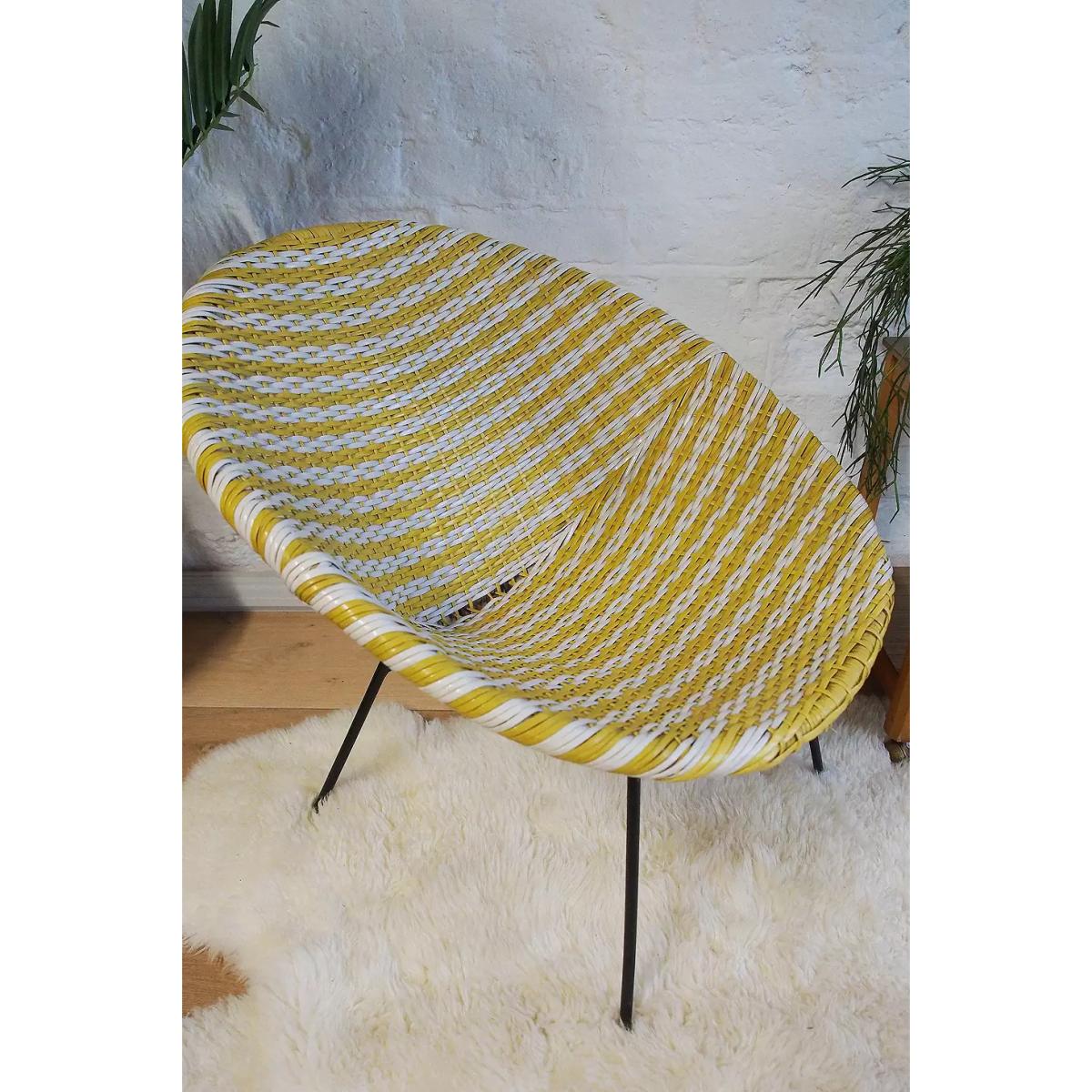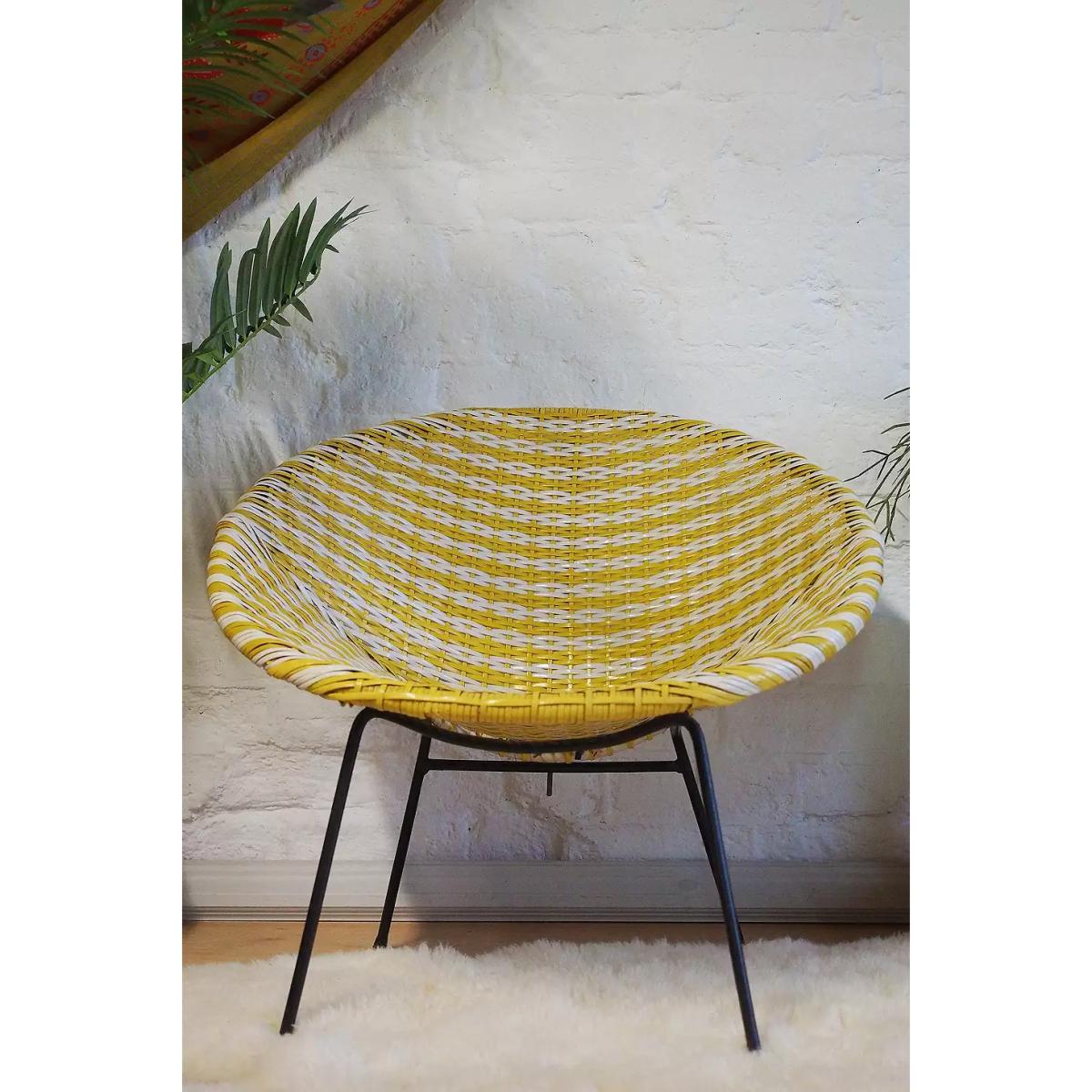 Effortless 1960s satellite chair with a plasticised rattan chair and steel frame. Original vintage piece with a rounded shape. *Please note: This item is not eligible for Next Day Delivery. For any large furniture, delivery can take between 1-2 weeks and we cannot deliver this outside of UK mainland. All Urban Renewal Vintage homeware is non-returnable. * **About Urban Renewal Vintage** \- One-of-a-kind pieces sourced by the vintage furniture experts at Originall Creations \- Authentic, pre-loved vintage pieces which are sold as seen and therefore may show signs of wear and tear \- This item will be dispatched by the vendor and may take longer to process than other items in your order **Content + Care** \- Steel, Rattan \- Wipe with clean, dry cloth \- Some signs of age related wear **Size** \- 65cm x 69cm x 61cm
