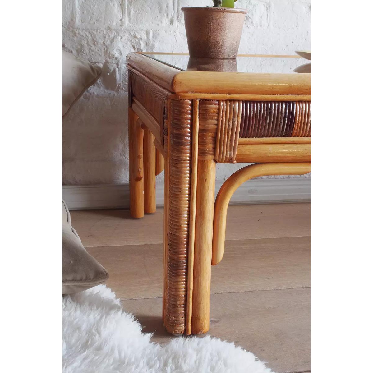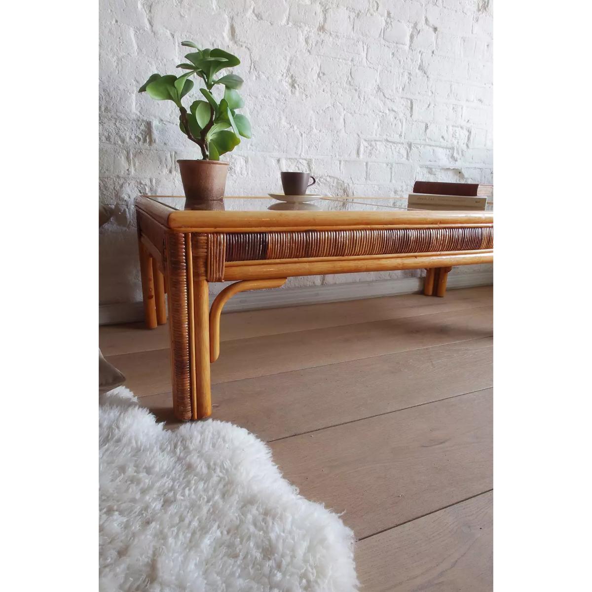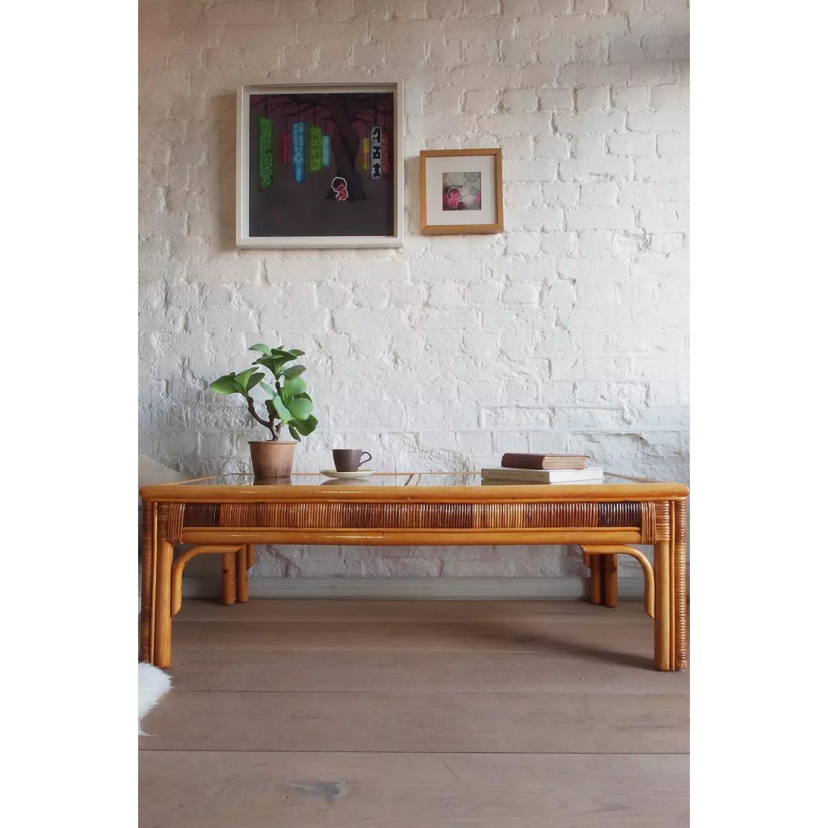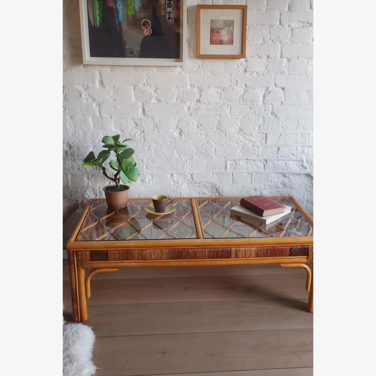 Vintage coffee table from the 1980s. Made from bent bamboo and finished with a tempered glass top. *Please note: This item is not eligible for Next Day Delivery. For any large furniture, delivery can take between 1-2 weeks and we cannot deliver this outside of mainland UK. All Urban Renewal Vintage homeware is non-returnable. * **About Urban Renewal Vintage** \- One-of-a-kind pieces sourced by the vintage furniture experts at Originall Creations \- Authentic, pre-loved vintage pieces which are sold as seen and therefore may show signs of wear and tear \- This item will be dispatched by the vendor and may take longer to process than other items in your order **Content + Care** \- Bamboo, Glass \- Wipe with a clean, dry cloth **Size** \- H: 39cm x W: 116cm x L: 600cm