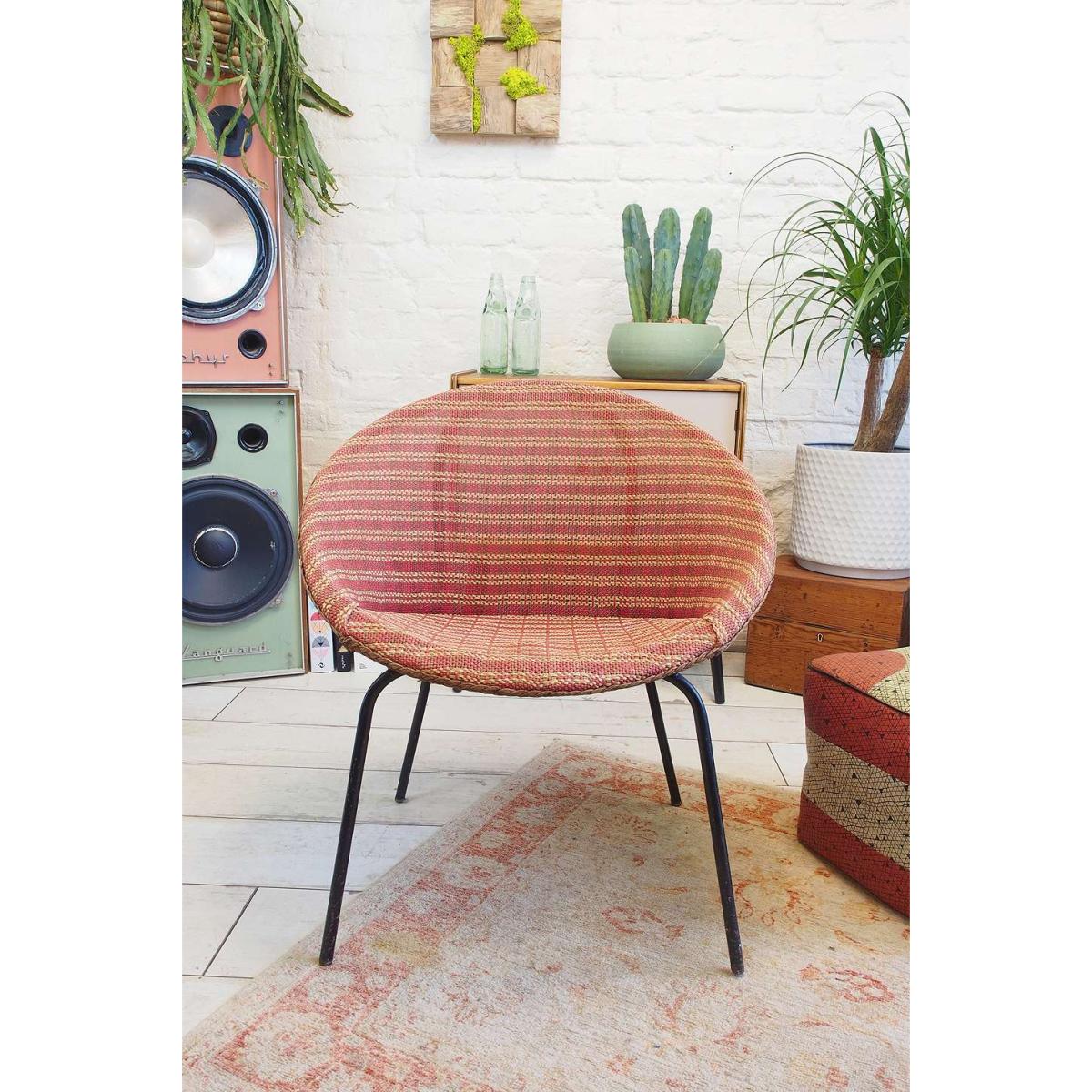 Original 1970s Satelite chair with a woven canvas seat and steel construction. Classic seating solution for your mid-century-inspired space, complete with tapered legs and a bucket seat. *Please note: This item is not eligible for Next Day Delivery. For any large furniture, delivery can take between 2-3 weeks and we cannot deliver this outside of UK mainland. All Urban Renewal Vintage homeware is non-returnable. * **About Urban Renewal Vintage** \- One-of-a-kind pieces sourced by the vintage furniture experts at Originall Creations \- Authentic, pre-loved vintage pieces which are sold as seen and therefore may show signs of wear and tear \- This item will be dispatched by the vendor and may take longer to process than other items in your order **Content + Care** \- Steel, Textile \- Wipe with a clean, dry cloth **Size** \- 70cm x 65cm x 58cm