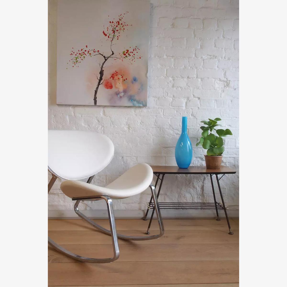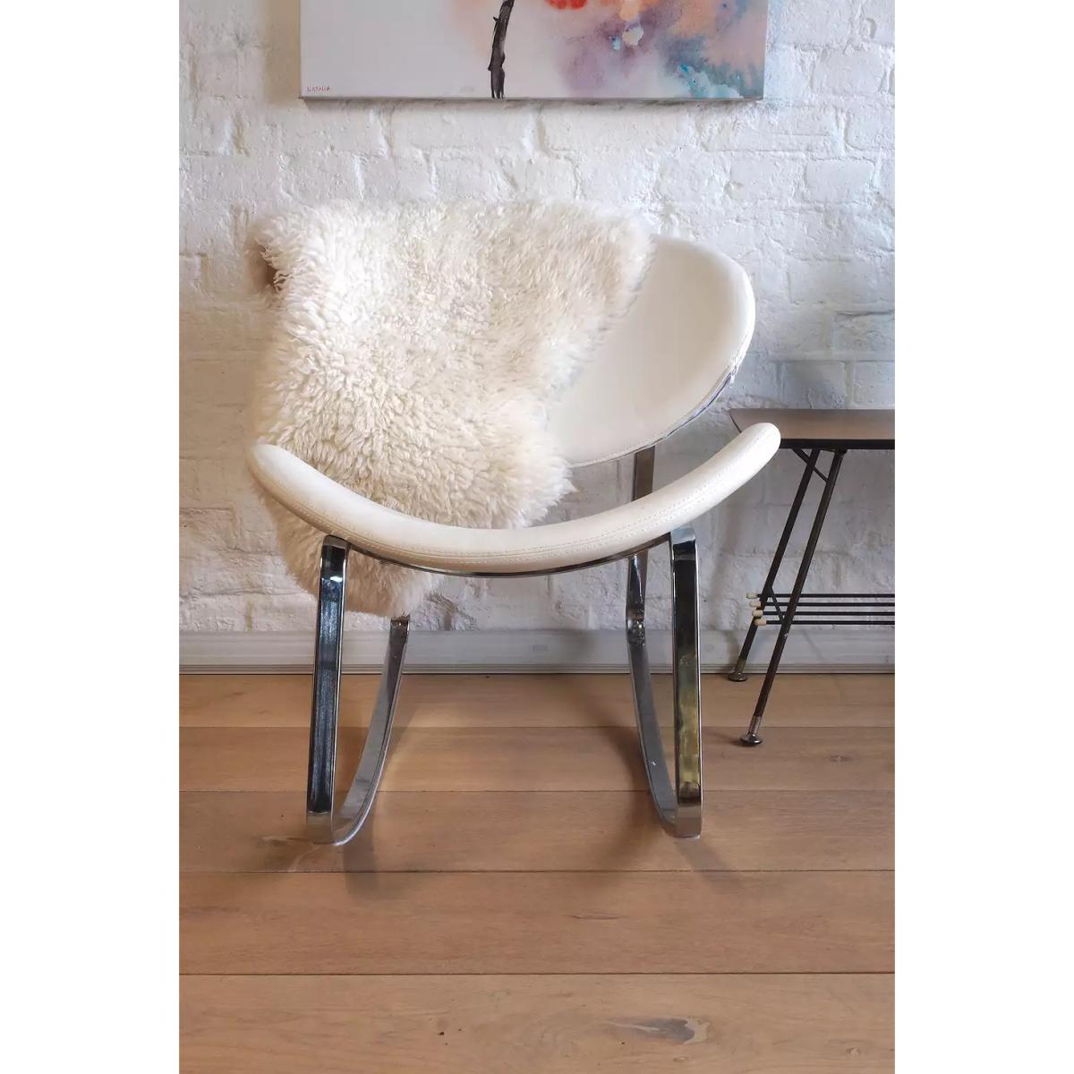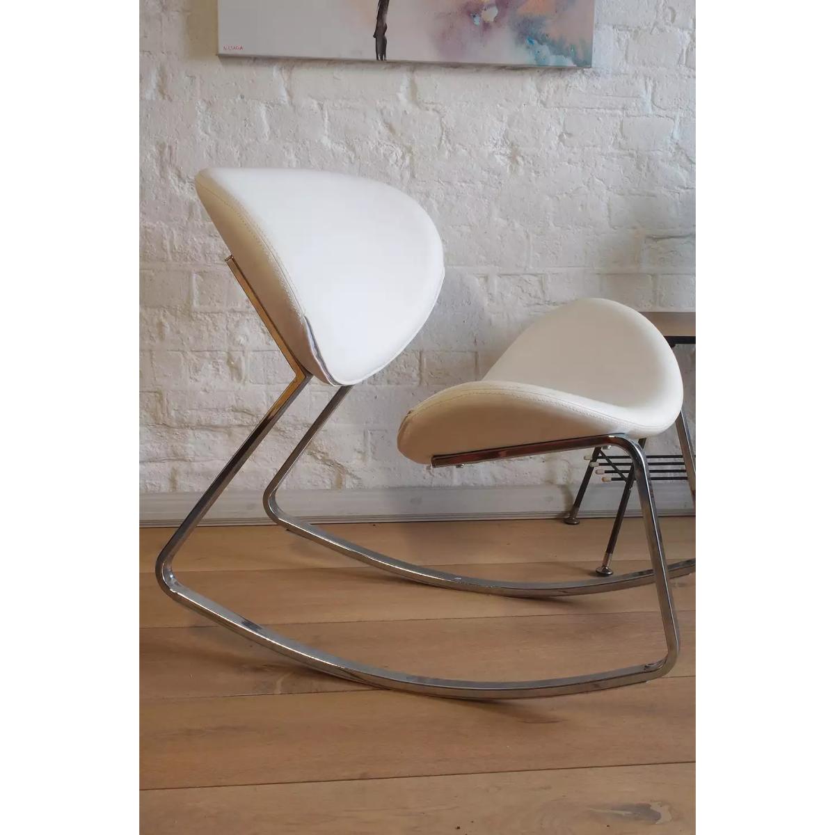Modern vintage rocking chair with a 1990s design. Features a curved construction with vinyl seats and chrome base, a stand-out choice for your lounge or bedroom. *Please note: This item is not eligible for Next Day Delivery. For any large furniture, delivery can take between 1-2 weeks and we cannot deliver this outside of UK mainland. All Urban Renewal Vintage homeware is non-returnable. * **About Urban Renewal Vintage** \- One-of-a-kind pieces sourced by the vintage furniture experts at Originall Creations \- Authentic, pre-loved vintage pieces which are sold as seen and therefore may show signs of wear and tear \- This item will be dispatched by the vendor and may take longer to process than other items in your order **Content + Care** \- Vinyl, Chromed steel \- Spot clean \- True vintage item with some scuffing to base **Size** \- 73cm x 65cm x 81cm