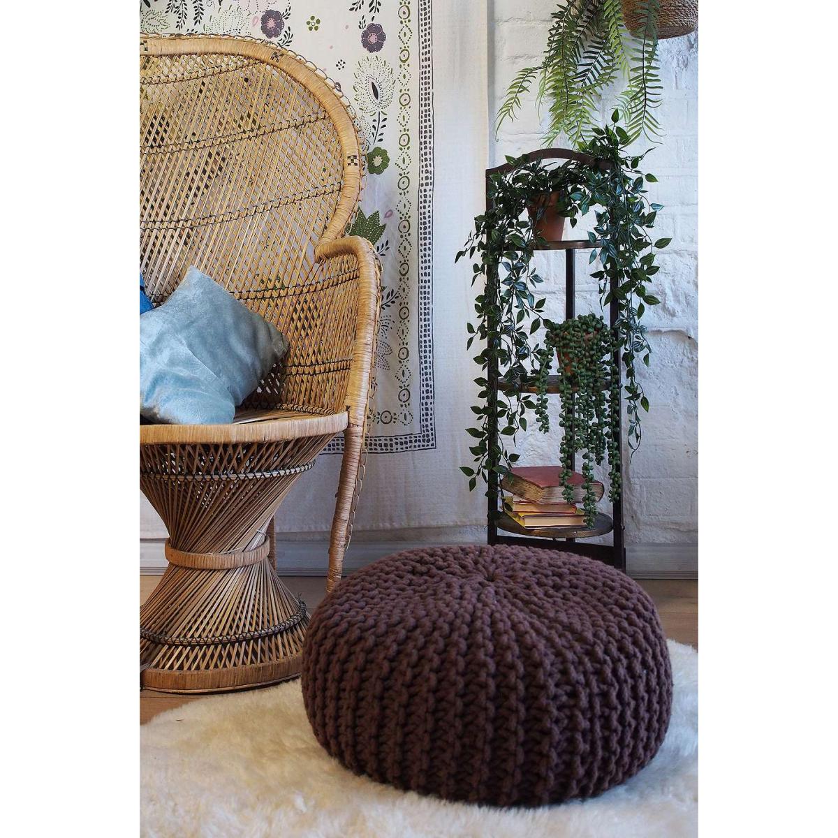 Crocheted footstool for your living space. True vintage piece with a rounded pouf shape and a textured crochet fabrication. *Please note: This item is not eligible for Next Day Delivery. For any large furniture, delivery can take between 1-2 weeks and we cannot deliver this outside of UK mainland. All Urban Renewal Vintage homeware is non-returnable. * **About Urban Renewal Vintage** \- One-of-a-kind pieces sourced by the vintage furniture experts at Originall Creations \- Authentic, pre-loved vintage pieces which are sold as seen and therefore may show signs of wear and tear \- This item will be dispatched by the vendor and may take longer to process than other items in your order **Content + Care** \- Cotton \- Spot clean \- Some signs of age related wear **Size** \- 26cm x 50cm x 50cm