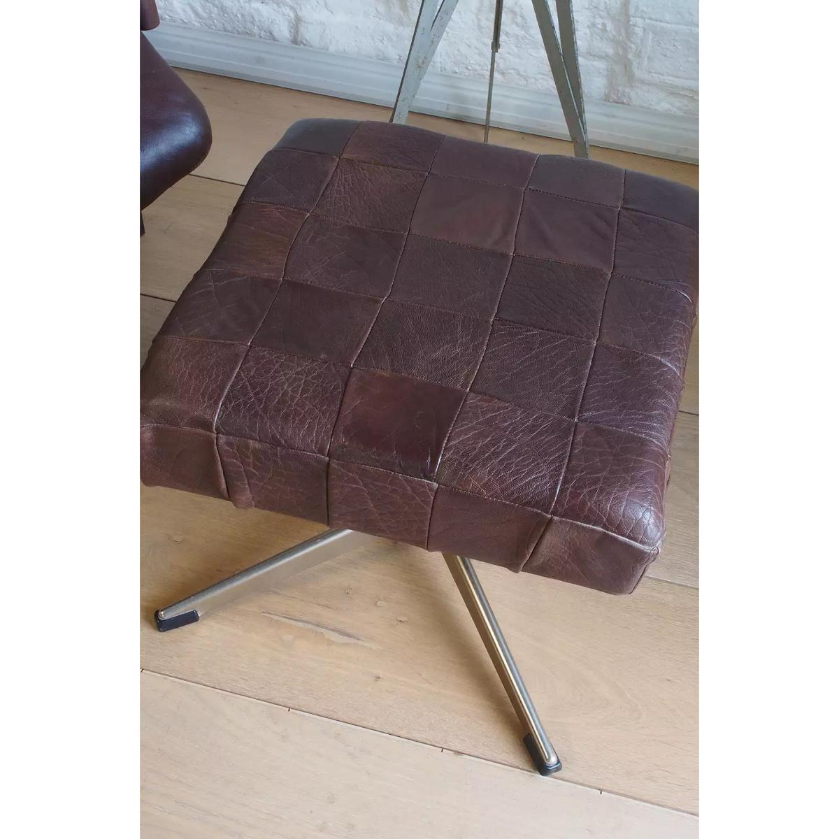 Original vintage footstool to pair with your mid-century armchair. True vintage piece from the 1970s, made with an aged patchwork leather construction with sleek chrome feet. *Please note: This item is not eligible for Next Day Delivery. For any large furniture, delivery can take between 1-2 weeks and we cannot deliver this outside of UK mainland. All Urban Renewal Vintage homeware is non-returnable. * **About Urban Renewal Vintage** \- One-of-a-kind pieces sourced by the vintage furniture experts at Originall Creations \- Authentic, pre-loved vintage pieces which are sold as seen and therefore may show signs of wear and tear \- This item will be dispatched by the vendor and may take longer to process than other items in your order **Content + Care** \- Leather, Chrome \- Spot clean \- True vintage item with signs of age-related wear to leather **Size** \- 38cm x 40cm x 40cm
