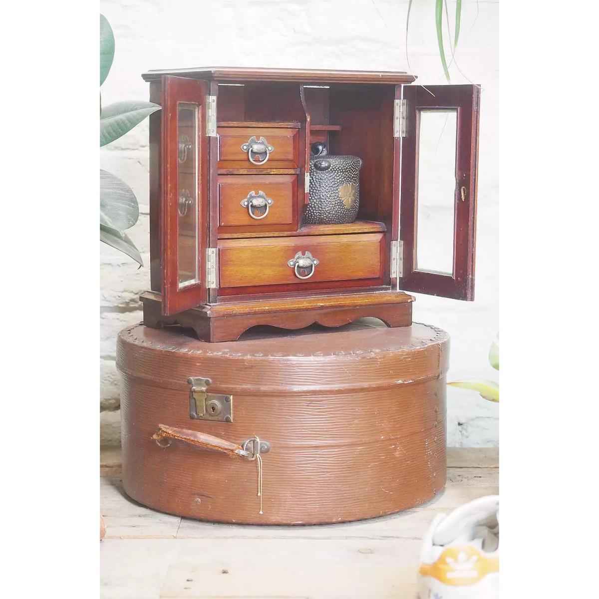 Original vintage smokers cabinet sourced from the early 20th century, the perfect unique addition to any eclectic space. Crafted from mahogany wood with french opening doors with glass centres. Inside the cabinet features two drawers with metal handles and a steel pot atop a single drawer to the base. *Online return only. This item cannot be returned instore. Please note furniture items currently cannot be shipped to Northern Ireland or The Republic of Ireland. Delivery of large furniture items may take 2-3 weeks and are therefore not eligible for Next Day Delivery.* **About Urban Renewal Vintage** \- One-of-a-kind pieces sourced by the vintage furniture experts at Originall Creations \- Authentic, pre-loved vintage pieces which are sold as seen and therefore may show signs of wear and tear \- This item will be dispatched by the vendor and may take longer to process than other items in your order **Content + Care** \- Mahogany,Glass \- Wipe clean **Size** \- H:35cm x W:33cm x D:20cm