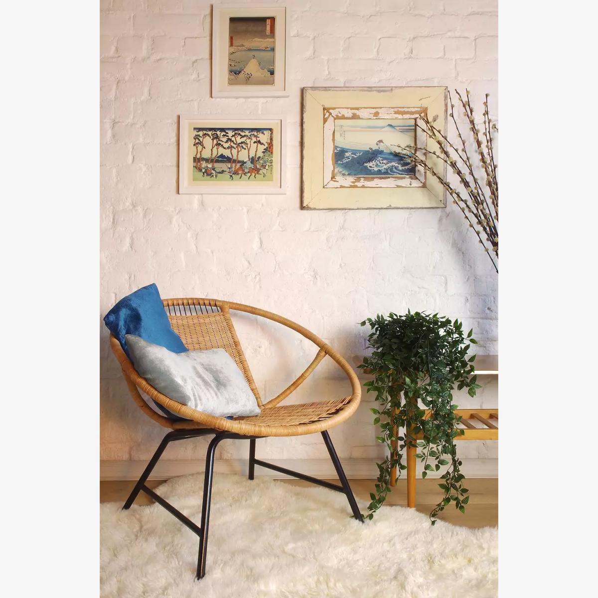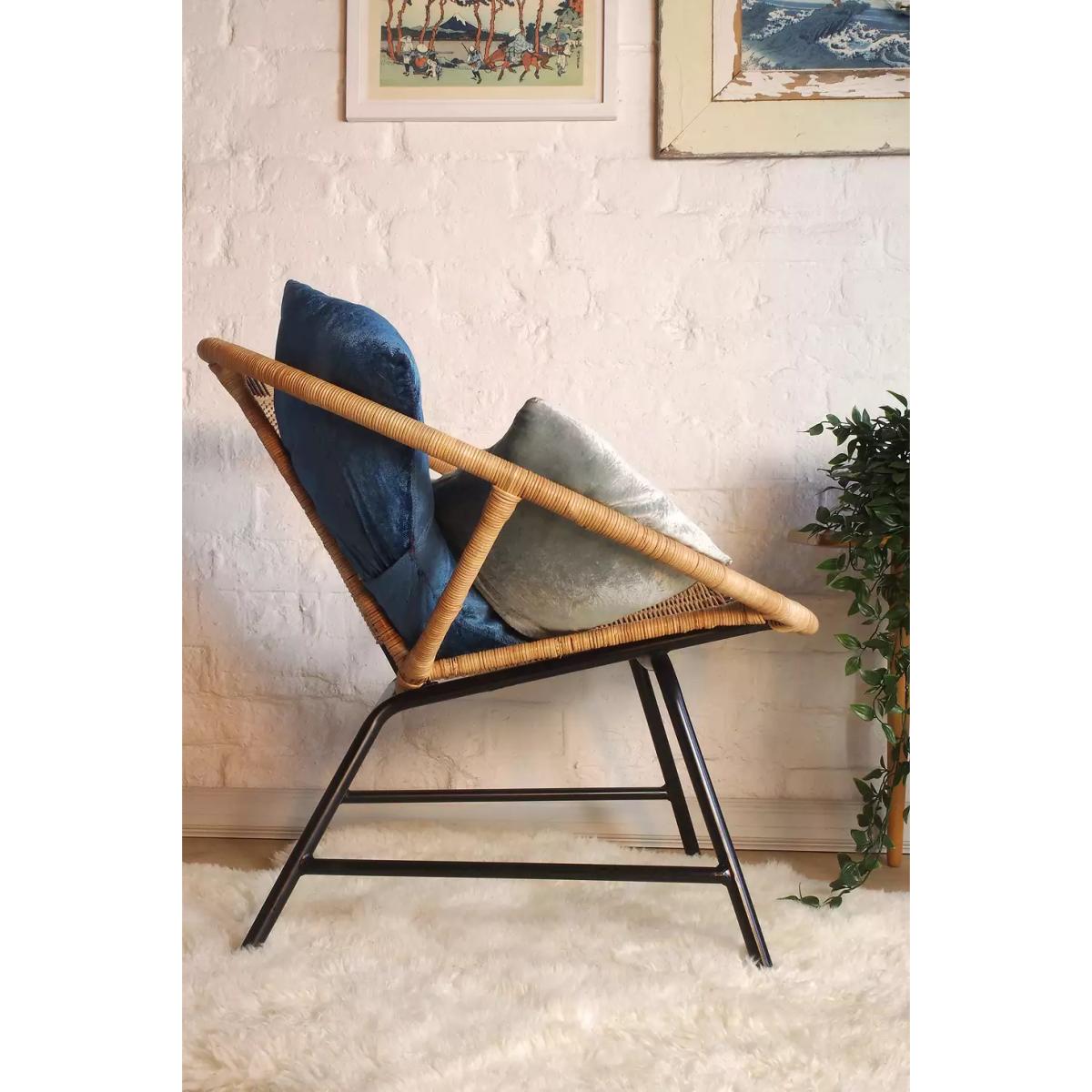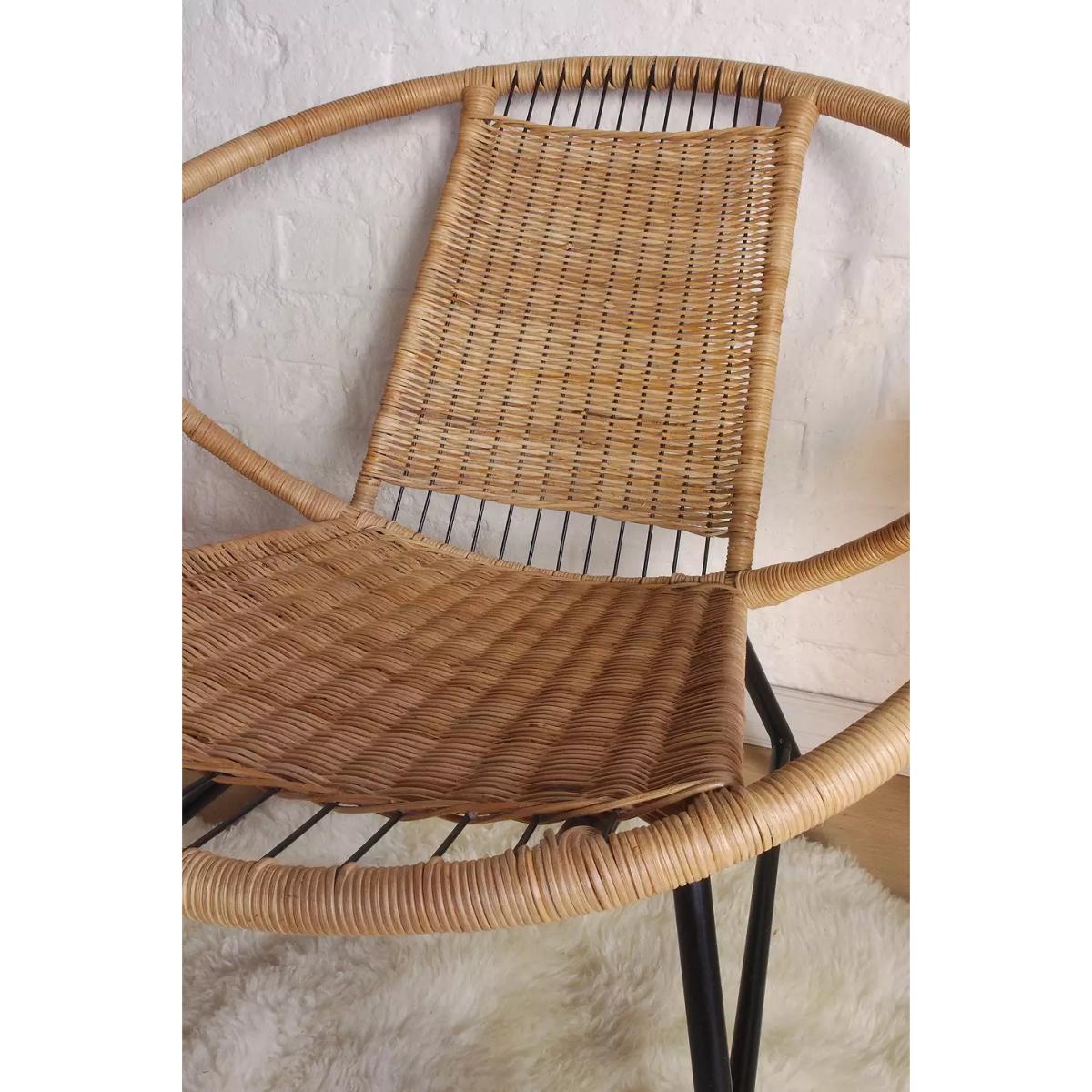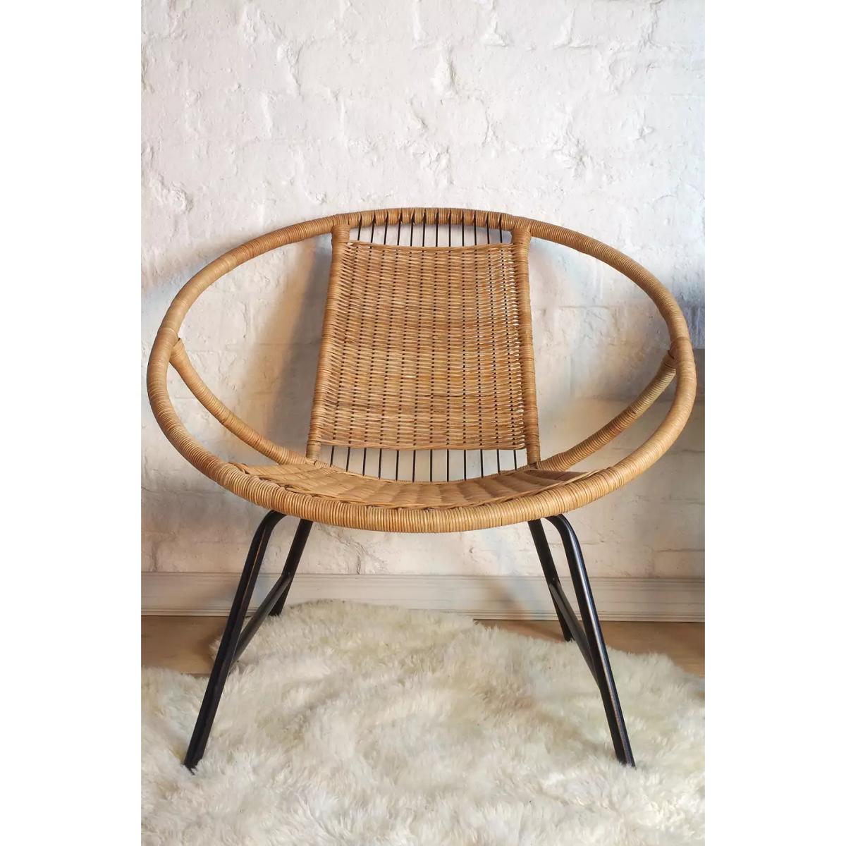 00s-inspired satellite chair with a round chair back and rattan covering. Made with a black metal frame and circular construction. *Please note: This item is not eligible for Next Day Delivery. For any large furniture, delivery can take between 1-2 weeks and we cannot deliver this outside of UK mainland. All Urban Renewal Vintage homeware is non-returnable. * **About Urban Renewal Vintage** \- One-of-a-kind pieces sourced by the vintage furniture experts at Originall Creations \- Authentic, pre-loved vintage pieces which are sold as seen and therefore may show signs of wear and tear \- This item will be dispatched by the vendor and may take longer to process than other items in your order **Content + Care** \- Tubular steel, Rattan \- Wipe with clean, dry cloth **Size** \- 66cm x 69cm x 67cm