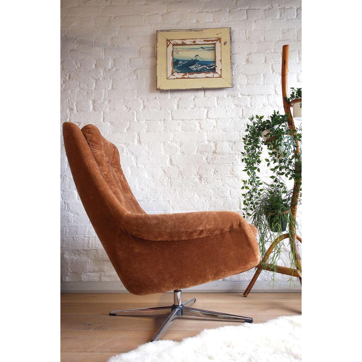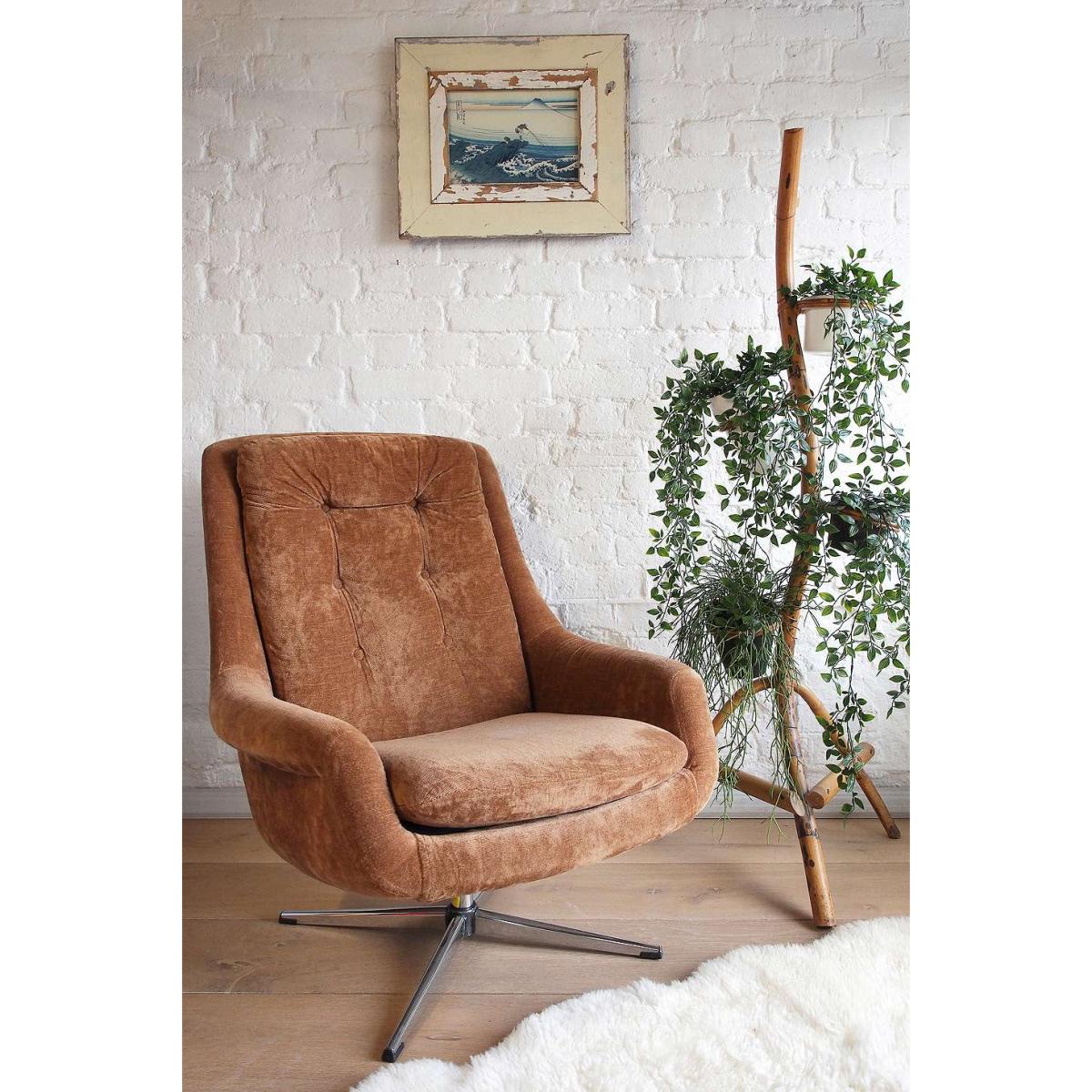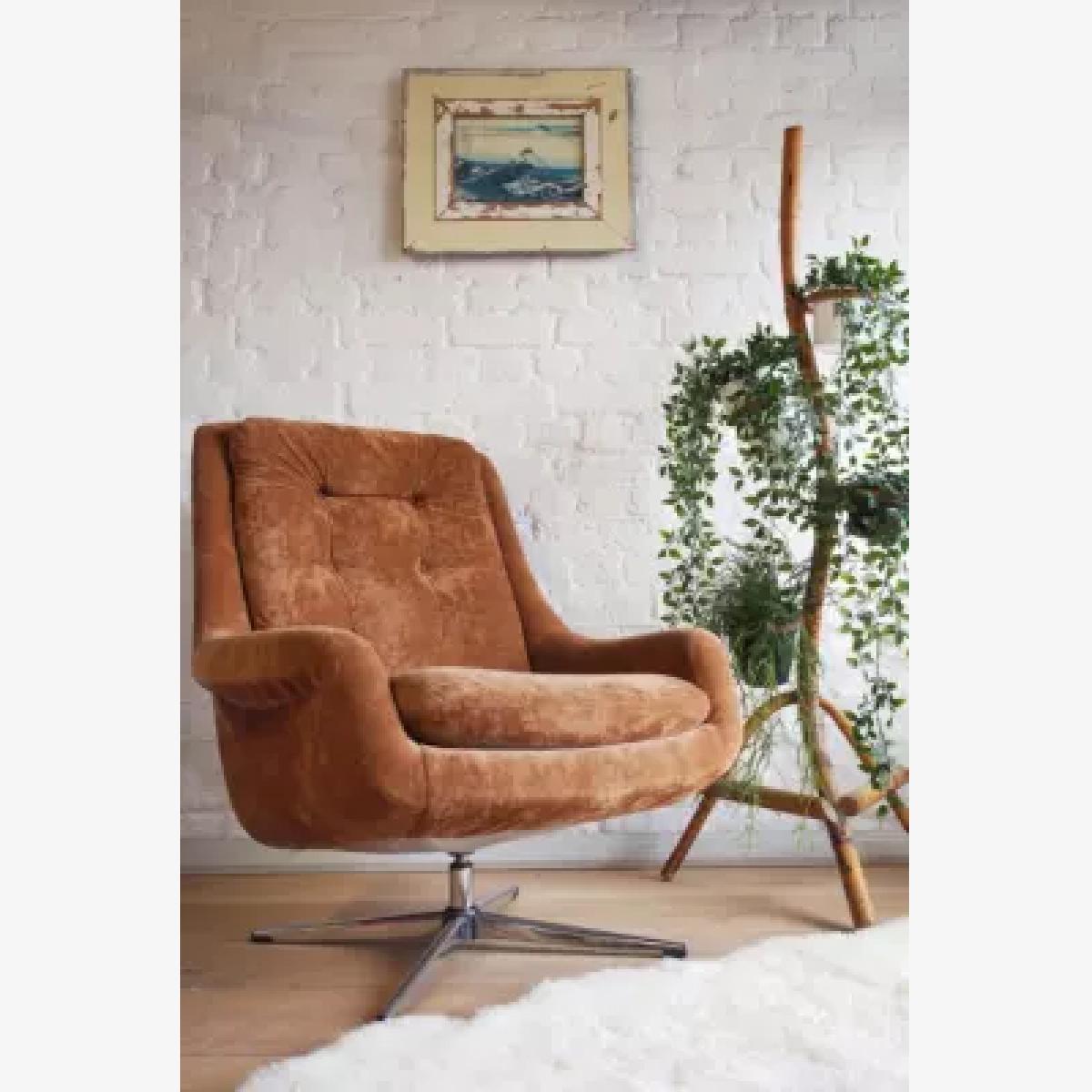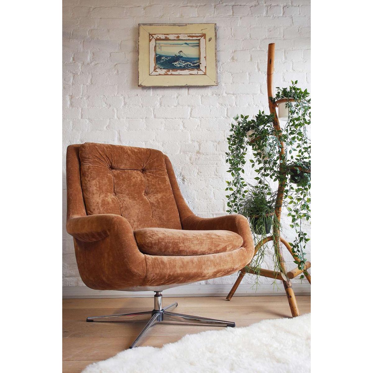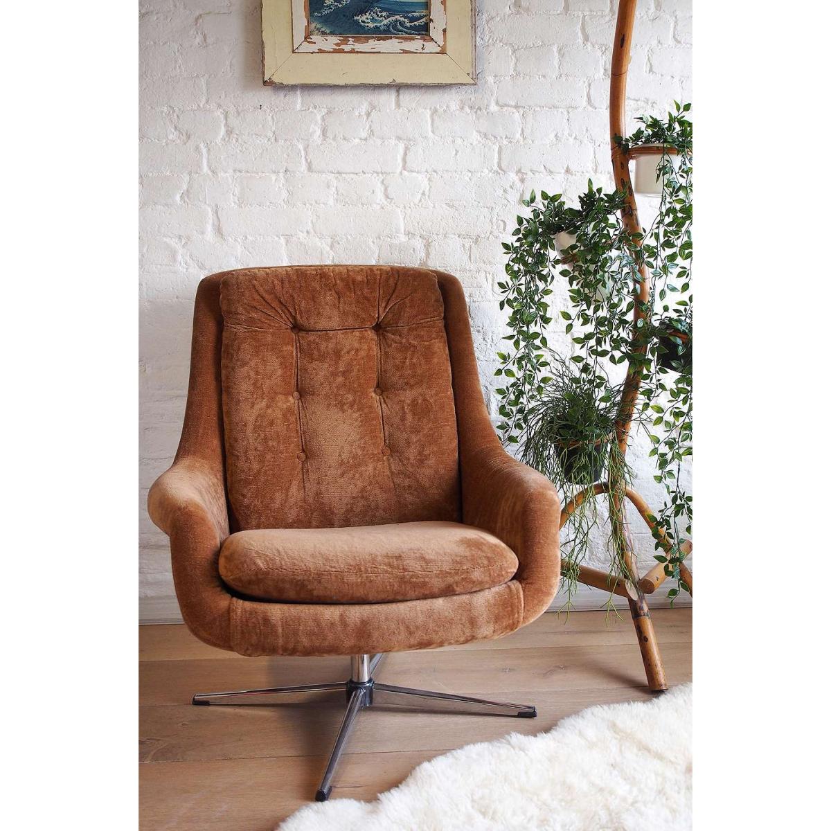 Button back chair with pristine original upholstery, a true vintage piece sourced from the 1970s. Features a rounded construction with a plush cushioned seat and swivel steel base. *Please note: This item is not eligible for Next Day Delivery. For any large furniture, delivery can take between 1-2 weeks and we cannot deliver this outside of UK mainland. All Urban Renewal Vintage homeware is non-returnable. * **About Urban Renewal Vintage** \- One-of-a-kind pieces sourced by the vintage furniture experts at Originall Creations \- Authentic, pre-loved vintage pieces which are sold as seen and therefore may show signs of wear and tear \- This item will be dispatched by the vendor and may take longer to process than other items in your order **Content + Care** \- Textile, Steel \- Wipe clean \- Some signs of age-related patina **Size** \- 93cm x 76cm x 80cm
