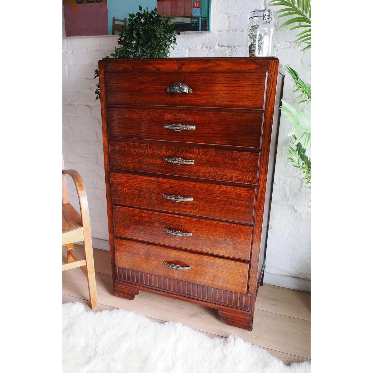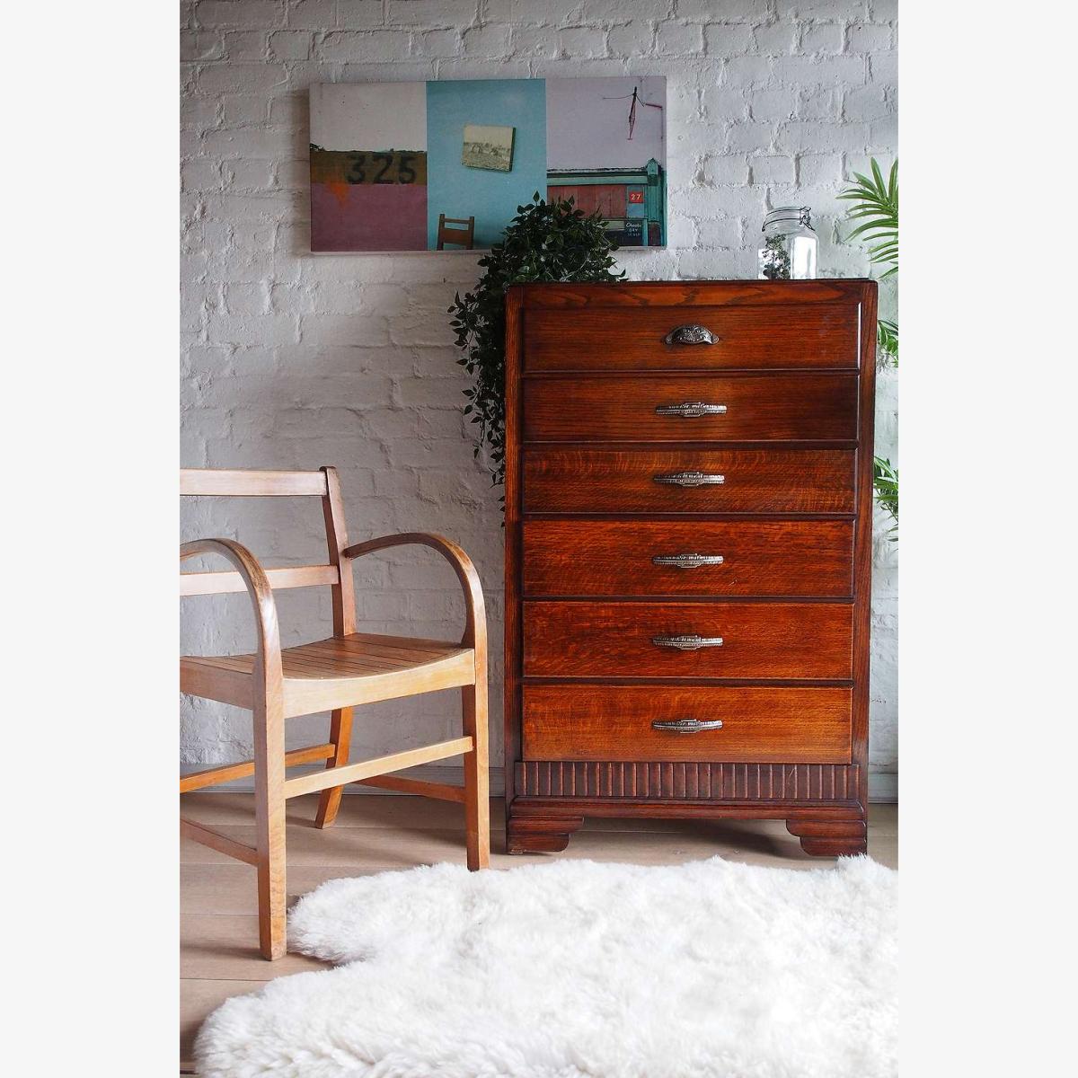 Beautiful wooden chest with ornate handles and bracket feet, a true vintage piece sourced from the 1960s. Features a rich oak construction with six functional drawers, the perfect addition to your mid-century interiors. *Please note: This item is not eligible for Next Day Delivery. For any large furniture, delivery can take between 1-2 weeks and we cannot deliver this outside of UK mainland. All Urban Renewal Vintage homeware is non-returnable. * **About Urban Renewal Vintage** \- One-of-a-kind pieces sourced by the vintage furniture experts at Originall Creations \- Authentic, pre-loved vintage pieces which are sold as seen and therefore may show signs of wear and tear \- This item will be dispatched by the vendor and may take longer to process than other items in your order **Content + Care** \- Oak \- Wipe clean \- Shows some signs of age related patina **Size** \- 121cm x 75cm x 44cm