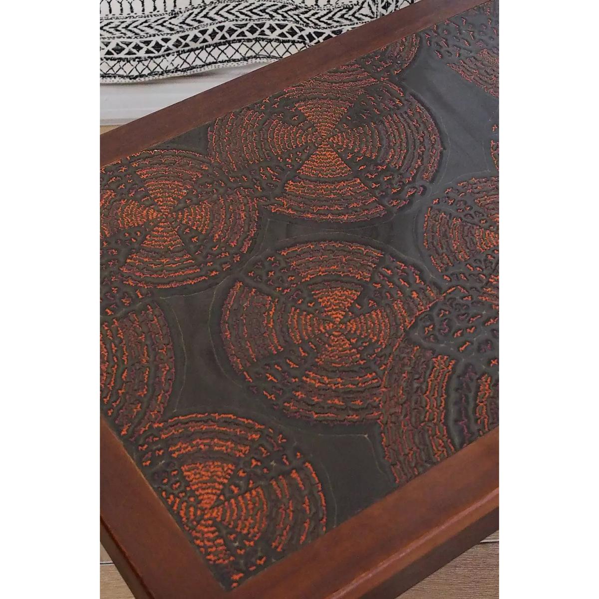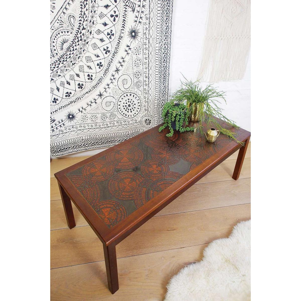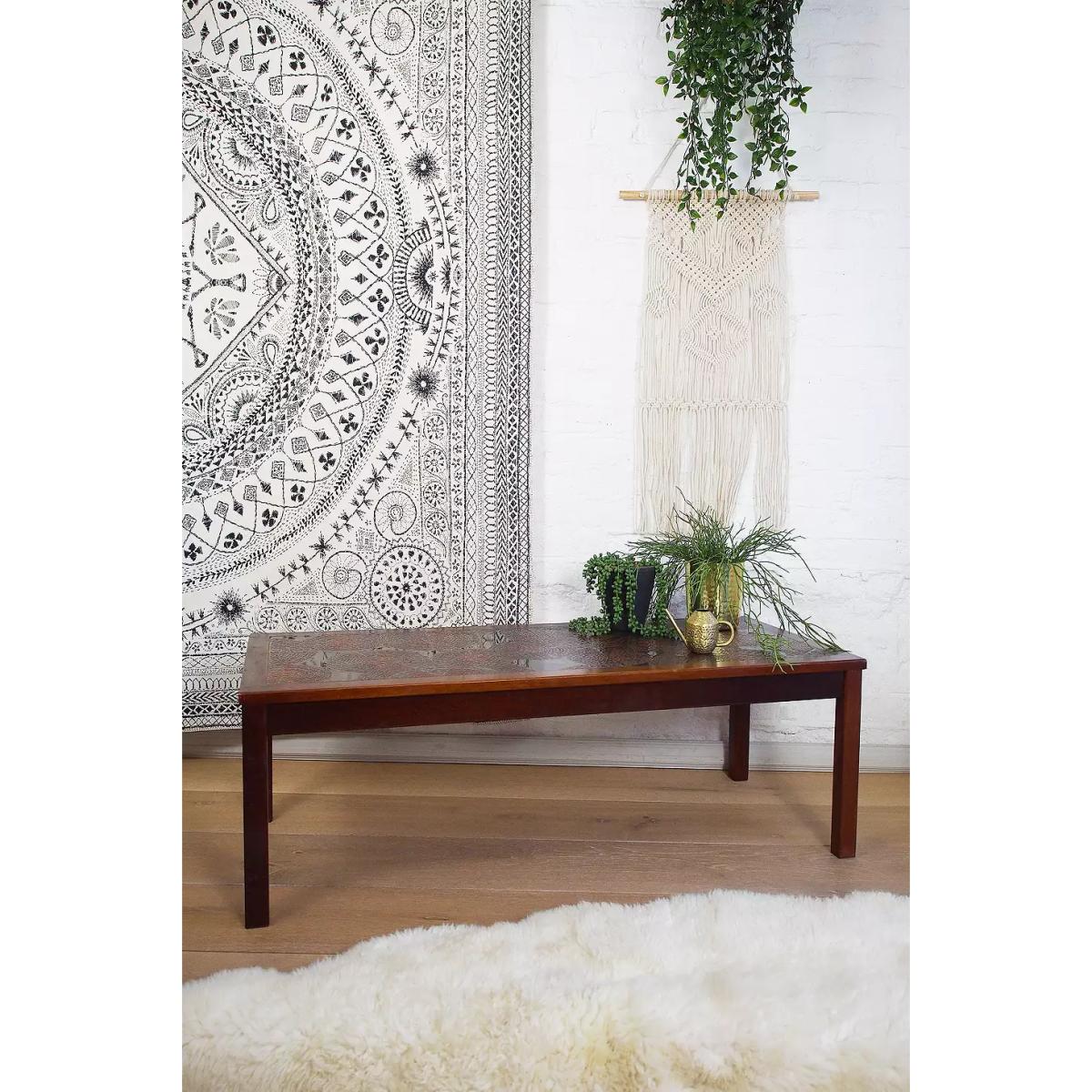 Ornate coffee table with a sturdy wooden construction and decorative tile-topped upper. Angular design with four legs and a sturdy teak construction. *Please note: This item is not eligible for Next Day Delivery. For any large furniture, delivery can take between 1-2 weeks and we cannot deliver this outside of UK mainland. All Urban Renewal Vintage homeware is non-returnable. * **About Urban Renewal Vintage** \- One-of-a-kind pieces sourced by the vintage furniture experts at Originall Creations \- Authentic, pre-loved vintage pieces which are sold as seen and therefore may show signs of wear and tear \- This item will be dispatched by the vendor and may take longer to process than other items in your order **Content + Care** \- Teak \- Spot clean \- True vintage item with minor signs of age related wear **Size** \- 40cm x 130cm x 54cm