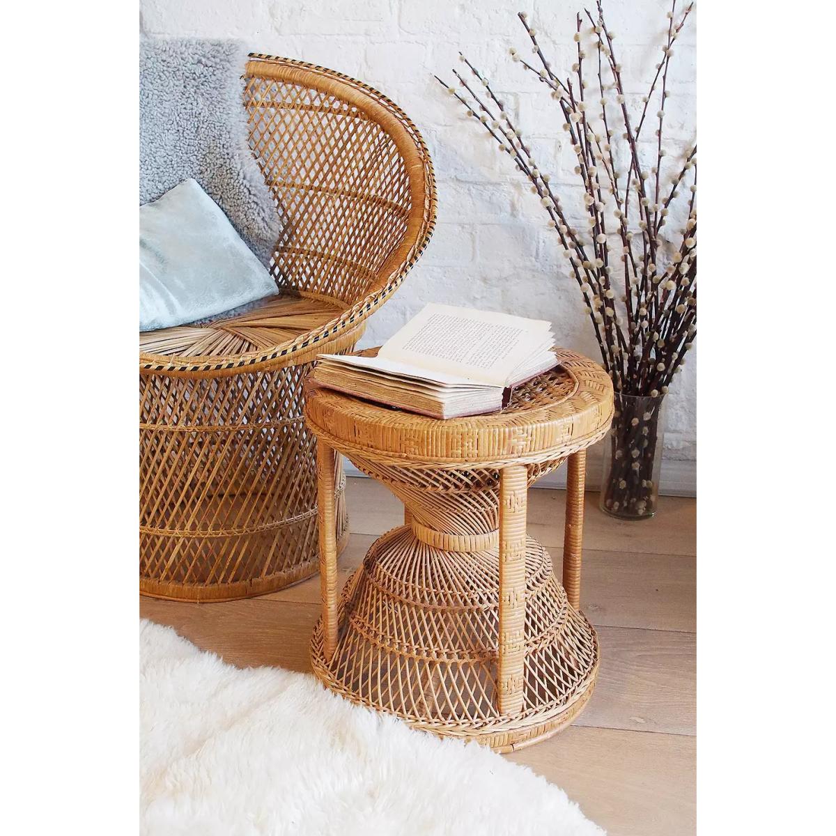 Original vintage stool with a cane and rattan construction. Features a circular shape with a twisted base and cane frame, finished with a rattan interior. *Please note: This item is not eligible for Next Day Delivery. For any large furniture, delivery can take between 1-2 weeks and we cannot deliver this outside of UK mainland. All Urban Renewal Vintage homeware is non-returnable. * **About Urban Renewal Vintage** \- One-of-a-kind pieces sourced by the vintage furniture experts at Originall Creations \- Authentic, pre-loved vintage pieces which are sold as seen and therefore may show signs of wear and tear \- This item will be dispatched by the vendor and may take longer to process than other items in your order **Content + Care** \- Cane, Rattan \- Wipe clean \- Some signs of age-related wear and tear **Size** \- 43cm x 39cm x 39cm
