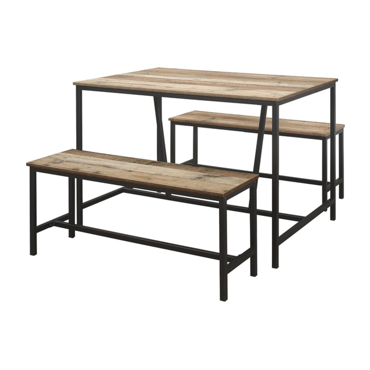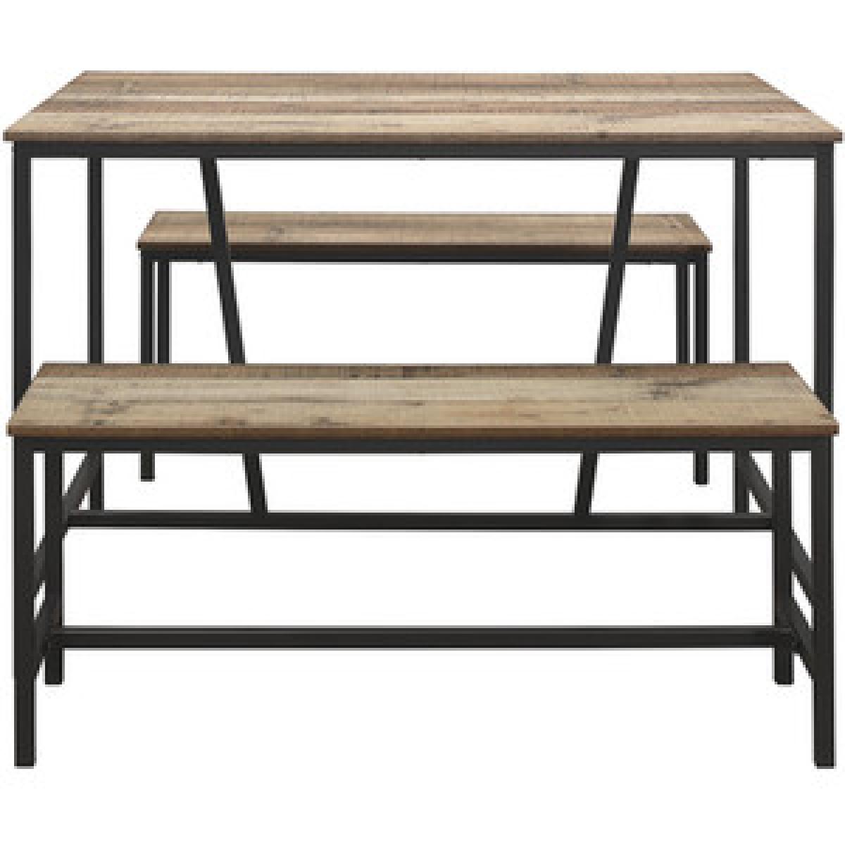 The Urban Dining Table and Bench Set will add a hint of industrial chic to your dining room. The beauty of a table and bench set-up is that you can squeeze plenty of people in, making it perfect for families as well as those who enjoy entertaining. This versatile dining room furniture set is constructed with an industrial-style metal frame and has a wood-effect finish. Care instructions: Wipe carefully with a soft, dry cloth.