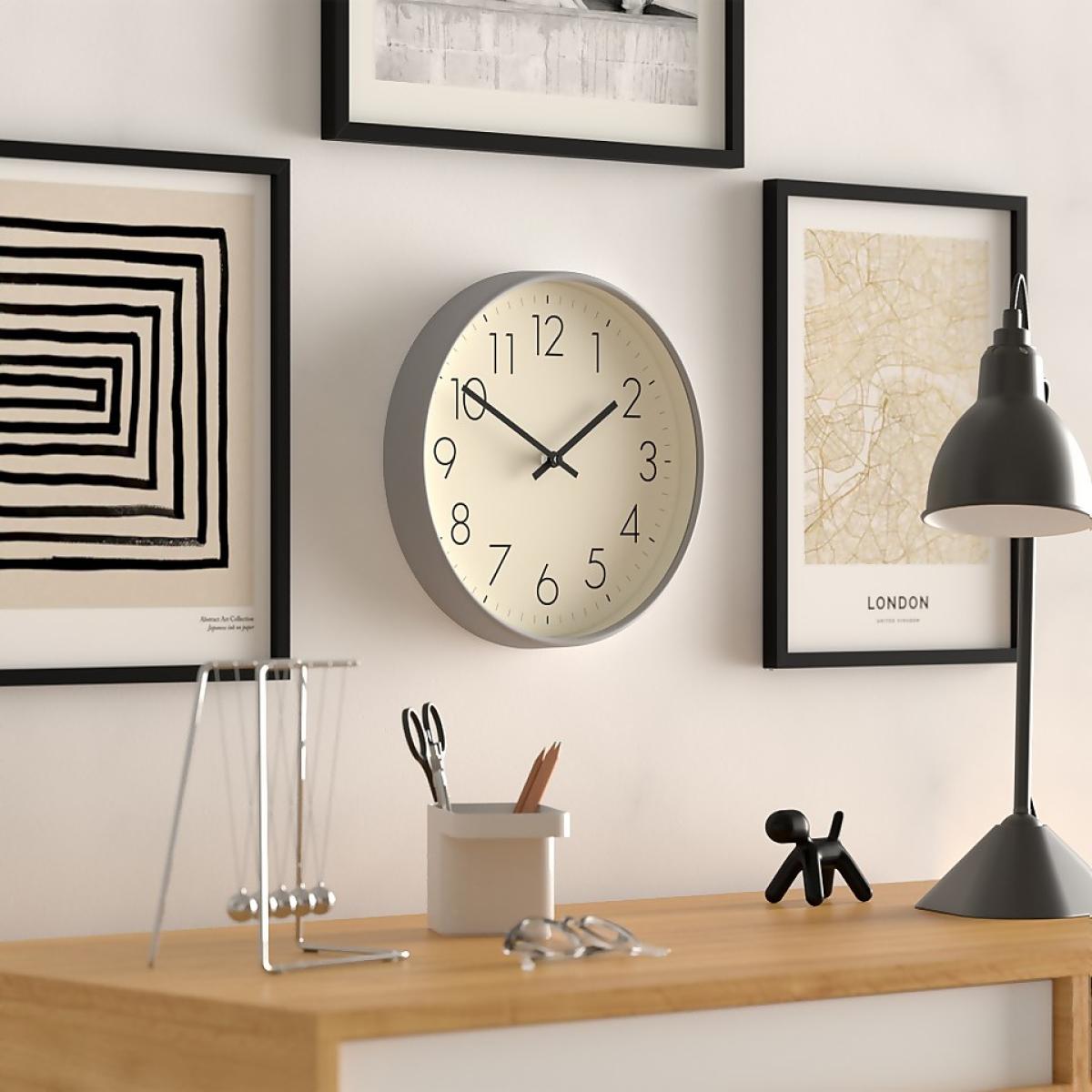 A modern grey wall clock with an easy-to-read dial measured by minimalist metal hands. The 'Elephant Grey' case has a contemporary matt finish. This minimal wall clock is the ideal choice to refresh a kitchen, office or hallway.