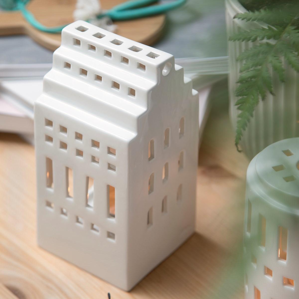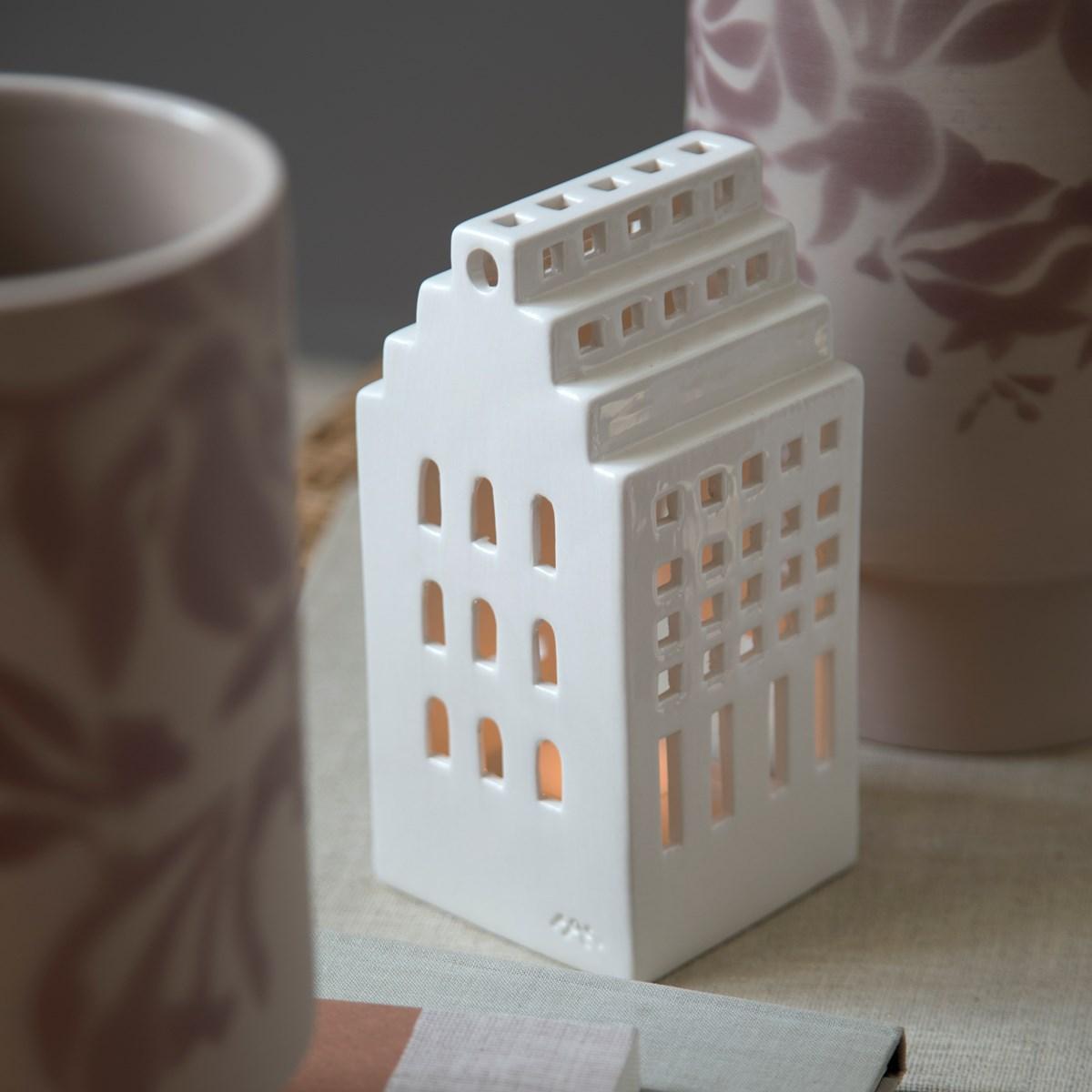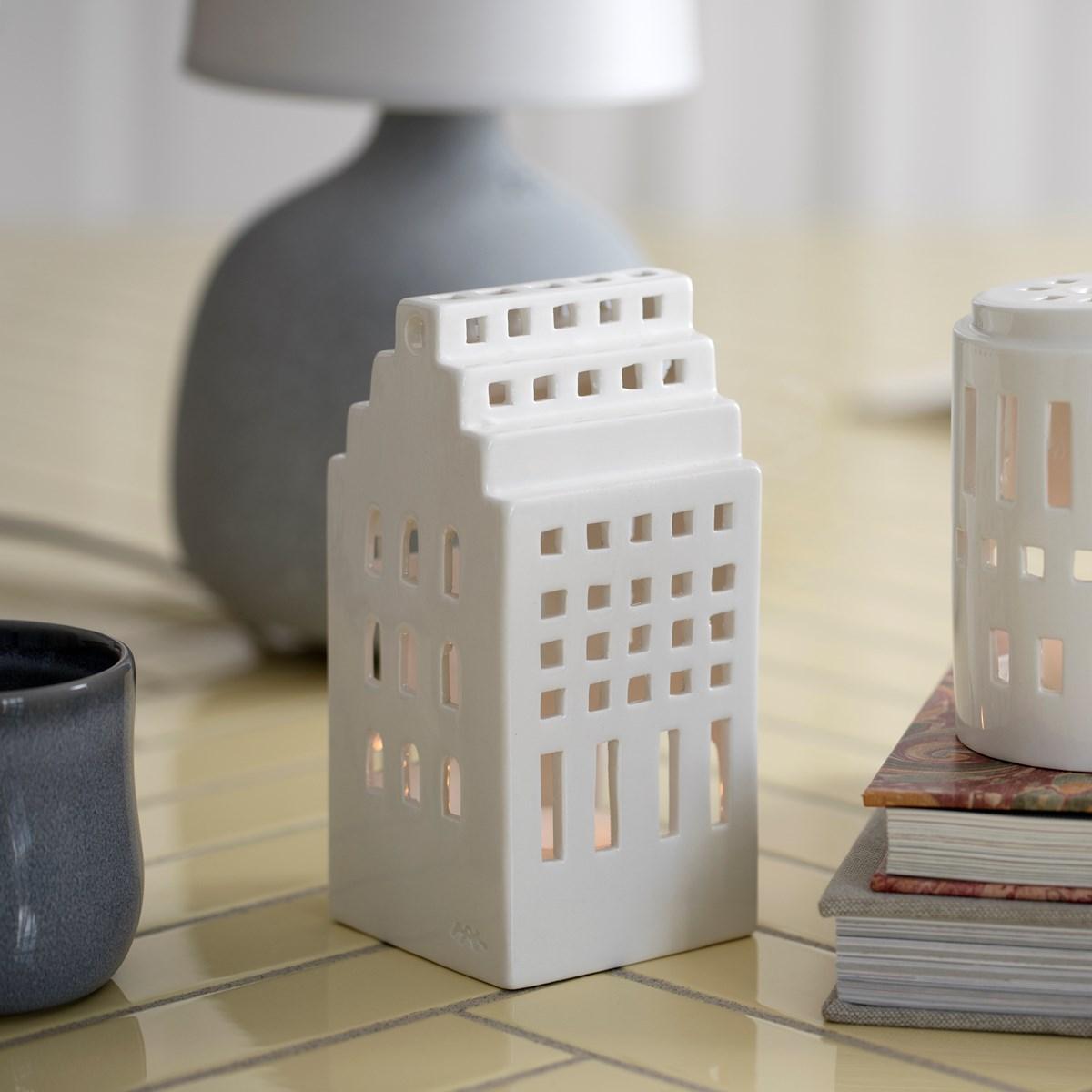 The Urbania candleholders are designed by Mette Bache and Barbara Bendix Becker for Kähler. The candleholders are made of ceramics and are all shaped as different houses with a modern expressions. The flickering light and the shadows, that are cast from the inside of the candleholders, create a beautiful effect and definitely bring a coziness to any room. The Urbania collection consists of five houses: an apartment house, a city house, a church, a pantheon and a basilica church. The candleholders are sold separately.