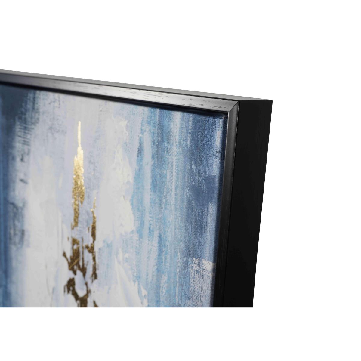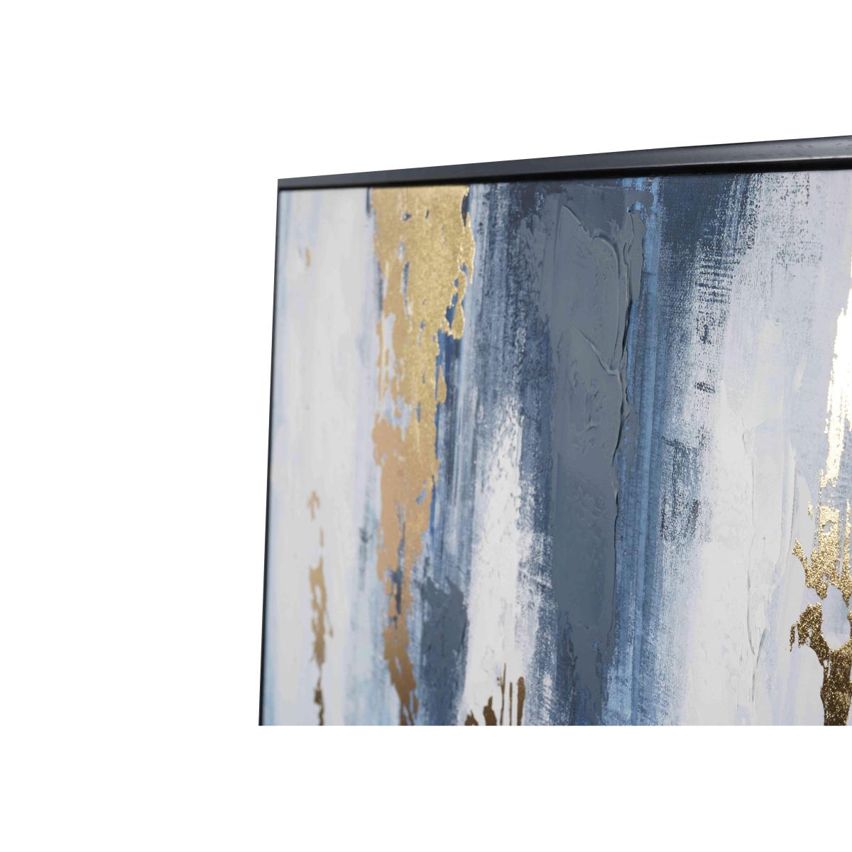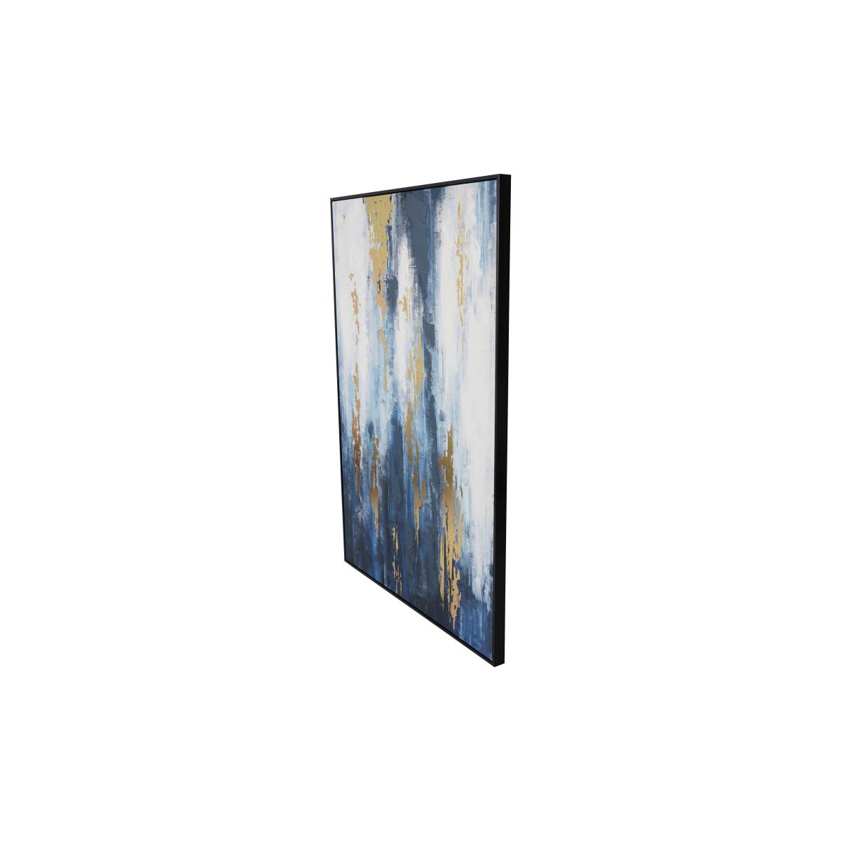 Bold and beautiful, this very large framed canvas wows with its creative power. Its painterly brushstroke effect in shades of blue from ice to midnight is highlighted with gold-coloured foil. Why you'll love it This stunning large-scale framed canvas is perfect for urban-style homes. Modern abstract art. Broad painterly brushstrokes in shades of blue. Finished with gold-coloured foil. Slim black wood-effect frame. This framed canvas is part of the Furniture Village home accessories collection. What you need to know Printed on canvas. Supplied with integrated hooks. Wall fixtures not included. Hangs vertically. Indoor use only. Dimensions Height: 140 cm (56 in). Depth: 4cm (2 in). Width: 100 cm (40 in).