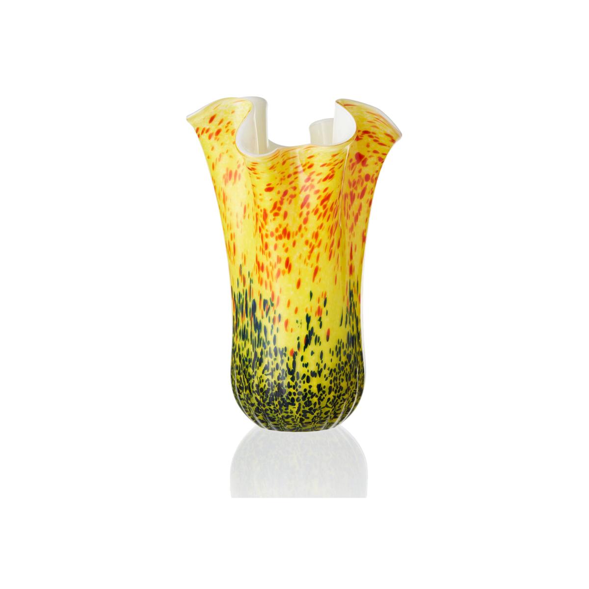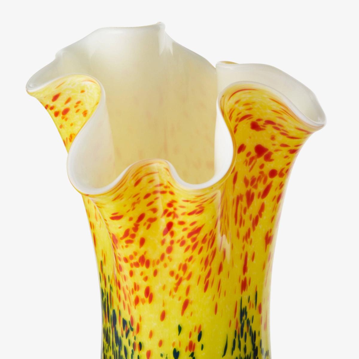 Inject your interior with radiance in the form of our swirling Urbis glass vase. This artistic vessel is crafted from tinted yellow glass and features orange flecks. Its daring colour and fluid shape are handblown by artisan glassmakers to a vibrant effect, making it ideal for displaying flowers. At home in modern environments, its unique form is inspired by carnival glass, whilst its craftsmanship ensures each piece is unique. Bring your home to life with this striking vase.