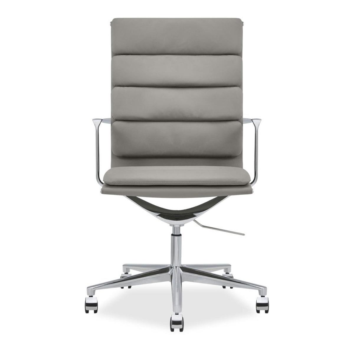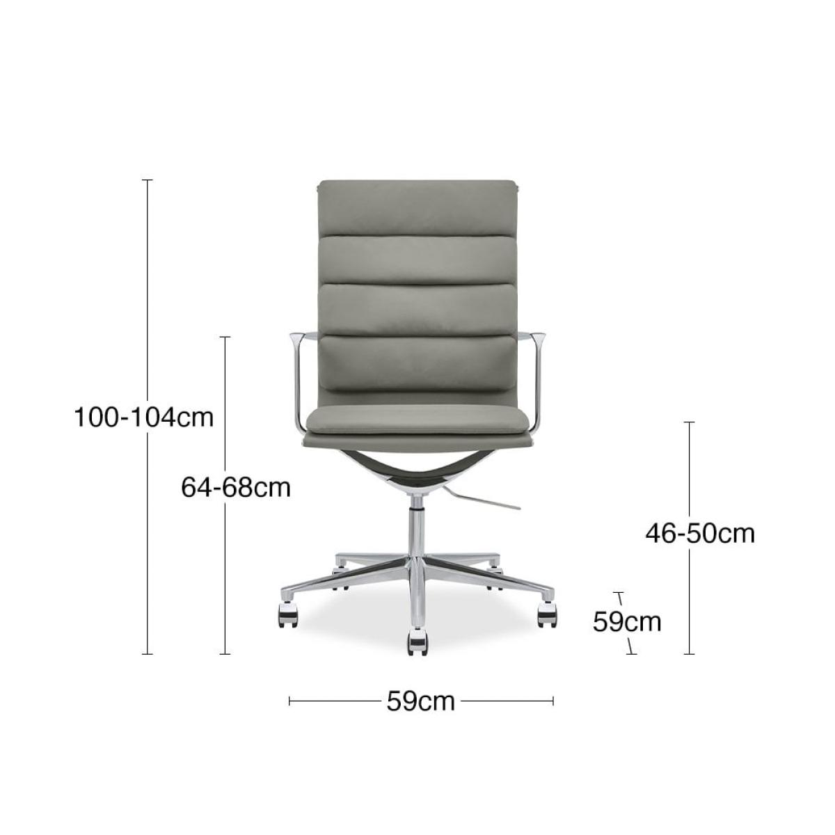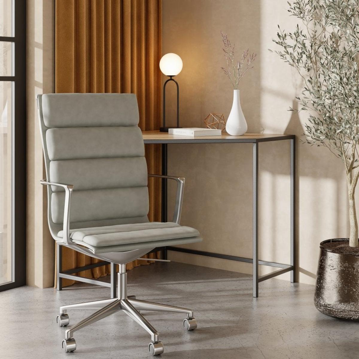 I love this high-back office chair for its sleek, modern aesthetic and ergonomic design, making it a practical yet stylish choice for contemporary interiors. Its grey upholstery and chrome accents lend it a neutral sophistication that works well in both minimalist and industrial spaces, as well as in more polished, professional environments. For styling tips, consider pairing it with a monochrome or neutral-toned desk to emphasise its clean lines, and add a touch of colour with accessories like vibrant desk organisers or greenery to keep the space lively. Its versatile look allows it to slot seamlessly into home offices, study areas, or even stylish communal workspaces, providing both comfort and a polished appearance.