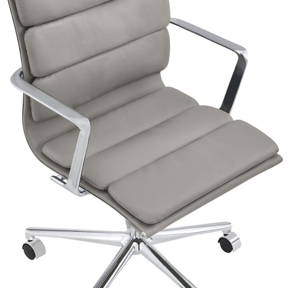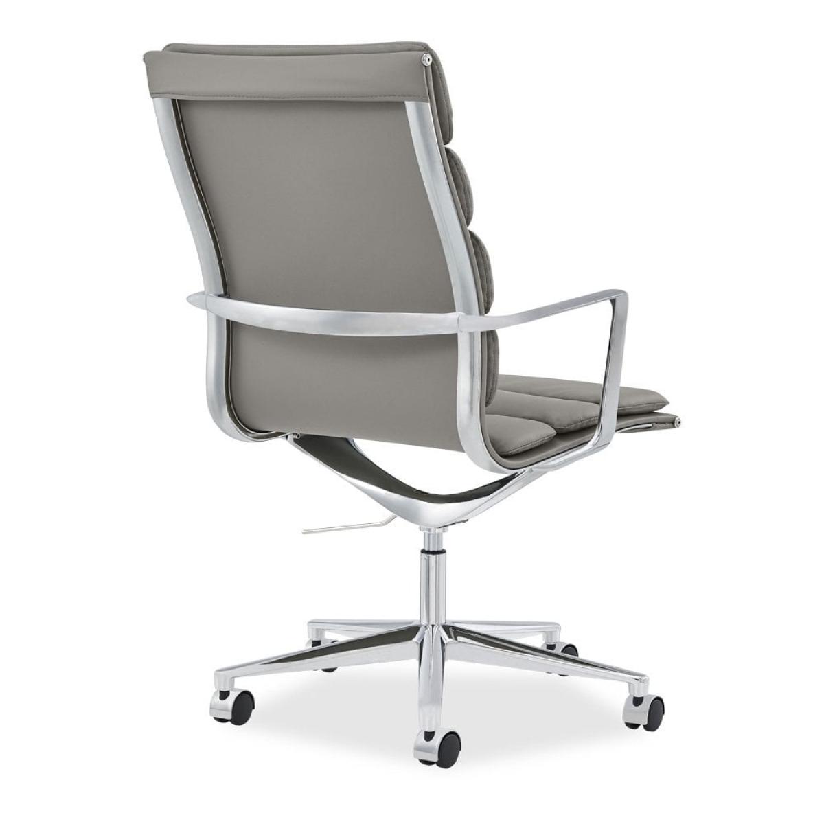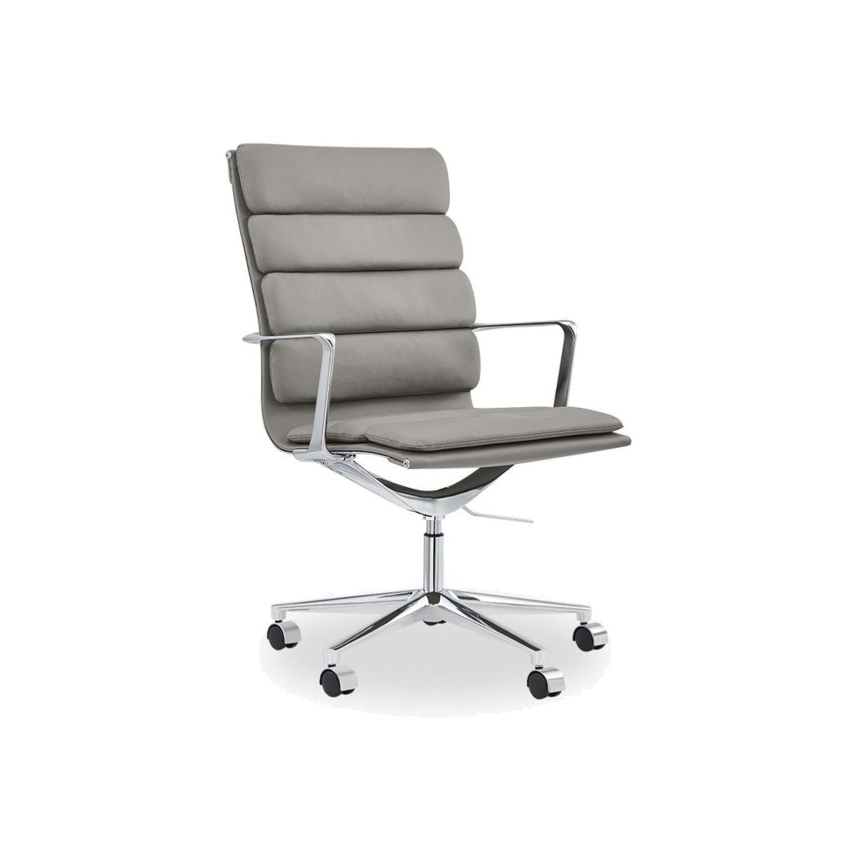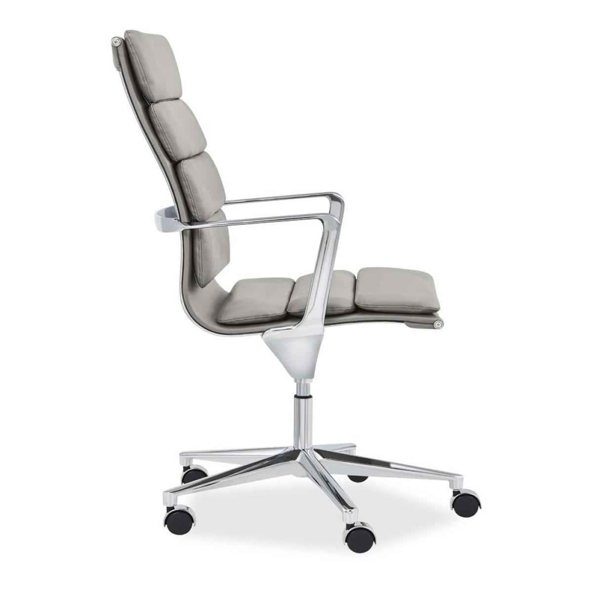 Soft padding, height adjustable, and swivel function make the Urma High Back Office Chair a stylish yet functional solution for your work from home setup. With a sleek chrome metal frame upon five wheels and soft grey faux leather upholstery with padded seat and backrest, the Urma Range is a modern sleek design.