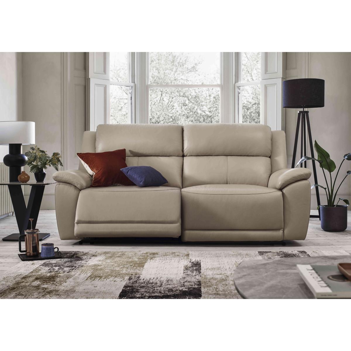 How does coming home to soft cushioning and deep, generous seating sound? The Utah range is made for comfort lovers, people who love nothing more than sinking into a comfy sofa and letting the stresses of the day melt away. Every piece is handmade to exacting standards to offer you a deeply relaxing sit time after time. Wide padded armrests, pocket sprung seats, and power recliners are ready and waiting to whisk you away to a world of bliss. And because it’s handmade exclusively for Furniture Village, you know it will last for years to come. The Utah range is available in suede-effect fabric and 100% genuine leather in a wide range of colours, so finding the perfect match for your home couldn’t be easier. Discover comfort on a new level with this 100% real leather power recliner 3 seater sofa. Every aspect of this sofa is designed to give you a wonderfully relaxing sit every time. Why you'll love it Good looks and big on comfort, this 3 seater power recliner sofa has it all. Clean modern style for contemporary homes. Smooth power reclining action. Smile stitching on the seats alleviates puddling. Padded armrests for extra comfort. Upholstered in 100% real leather in a wide choice of colours. This sofa is also available in suede-effect fabric. Static, non-reclining option also available. Handmade exclusively for Furniture Village. This 3 seater power recliner sofa is part of the Utah range. What you need to know Medium comfort level. Seat suspension: pocket coil sprung. Seat interior: high-resilience foam. Back interior: fibre. To keep maximum comfort and form, re-dress back and seat cushions daily. Leather has unique marks and characteristics with variance in colour and texture. Leather softens with use. Smoothing the tops of cushions helps to prevent signs of visual comfort. Please allow time for new recliners to ease. Please read our upholstery care guide for more advice. Complete the look with a Utah chair and storage footstool. Item code: UTH-3SP-LTH-020