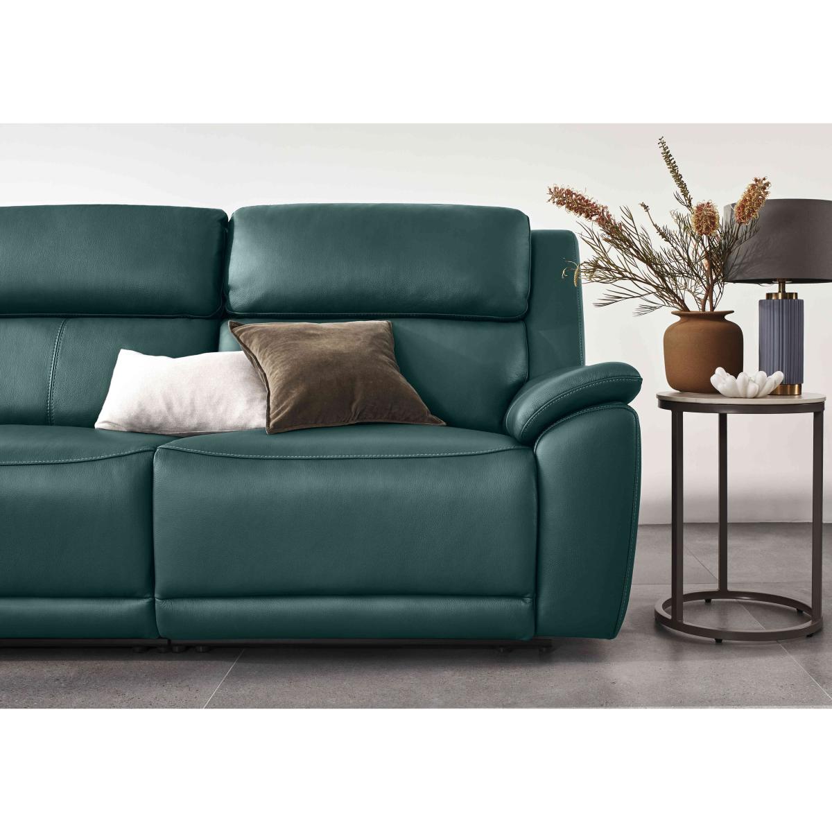 How does coming home to soft cushioning and deep, generous seating sound? The Utah range is made for comfort lovers, people who love nothing more than sinking into a comfy sofa and letting the stresses of the day melt away. Every piece is handmade to exacting standards to offer you a deeply relaxing sit time after time. Wide padded armrests, pocket sprung seats, and power recliners are ready and waiting to whisk you away to a world of bliss. And because it’s handmade exclusively for Furniture Village, you know it will last for years to come. The Utah range is available in suede-effect fabric and 100% genuine leather in a wide range of colours, so finding the perfect match for your home couldn’t be easier. Welcome to a new way to relax. This fabulous 100% leather three-seater sofa has smooth power recliners and heated seats, so you stay cosy as well as comfy. Why you'll love it Compact design with the ultimate relaxation feature – heated seats. Clean, modern style for contemporary homes. Incredibly comfy with smooth power recliners. And those heated seats make sure you’re incredibly cosy, too. Sprung seat and back promise superb all-over support. Pocket sprung seat cushions and padded armrests for extra comfort. With built-in USB for easy phone, tablet and laptop charging. Fabric upholstery in a wide choice of colours. This sofa is also available with 100% leather upholstery. Handmade exclusively for Furniture Village. This 3-seater leather power recliner sofa with heated seats is part of the Utah range. What you need to know Medium comfort level. Seat suspension: zig-zag springs. Seat cushioning: pocket coil spring and high-resilience foam. Cushioning is fixed. Back suspension: zig-zag springs. Back cushioning: fibre. Cushioning is fixed. Back is removable for easier access. Fixed seat and back cushions require smoothing and straightening regularly. To smooth and straighten fixed cushions, punch the back cushion’s top two corners and the seat cushion’s outer two corners, and pinch outwards. Leather has unique marks and characteristics with variance in colour and texture. Leather softens with use. Please read our upholstery care guide for more advice.