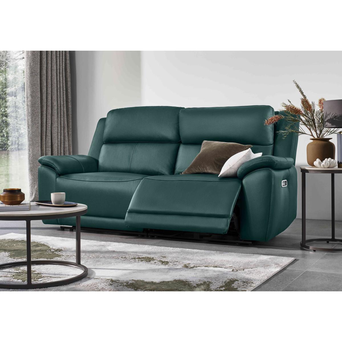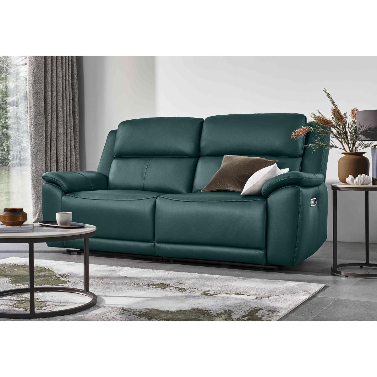 How does coming home to soft cushioning and deep, generous seating sound? The Utah range is made for comfort lovers, people who love nothing more than sinking into a comfy sofa and letting the stresses of the day melt away. Every piece is handmade to exacting standards to offer you a deeply relaxing sit time after time. Wide padded armrests, pocket sprung seats, and power recliners are ready and waiting to whisk you away to a world of bliss. And because it’s handmade exclusively for Furniture Village, you know it will last for years to come. The Utah range is available in suede-effect fabric and 100% genuine leather in a wide range of colours, so finding the perfect match for your home couldn’t be easier. Luxurious comfort has a new name – Utah. This three-seater leather sofa is designed for a more compact space but comes complete with an array of power features and even heated seats. Why you'll love it Compact design with the ultimate relaxation feature – heated seats. Clean, modern style for contemporary homes. Incredibly comfy with power recliners, power headrests and power lumbar support. And those heated seats make sure you’re incredibly cosy, too. Sprung seat and back promise superb all-over support. Pocket sprung seat cushions and padded armrests for extra comfort. With built-in USB for easy phone, tablet and laptop charging. Beautiful 100% leather upholstery in a choice of leather styles and colours. Handmade exclusively for Furniture Village. This 3-seater leather power recliner sofa with heated seats is part of the Utah range. What you need to know Medium comfort level. Seat suspension: zig-zag springs. Seat cushioning: pocket coil spring and high-resilience foam. Cushioning is fixed. Back suspension: zig-zag springs. Back cushioning: fibre. Cushioning is fixed. Back is removable for easier access. Fixed seat and back cushions require smoothing and straightening regularly. To smooth and straighten fixed cushions, punch the back cushion’s top two corners and the seat cushion’s outer two corners, and pinch outwards. Leather has unique marks and characteristics with variance in colour and texture. Leather softens with use. Please read our upholstery care guide for more advice.