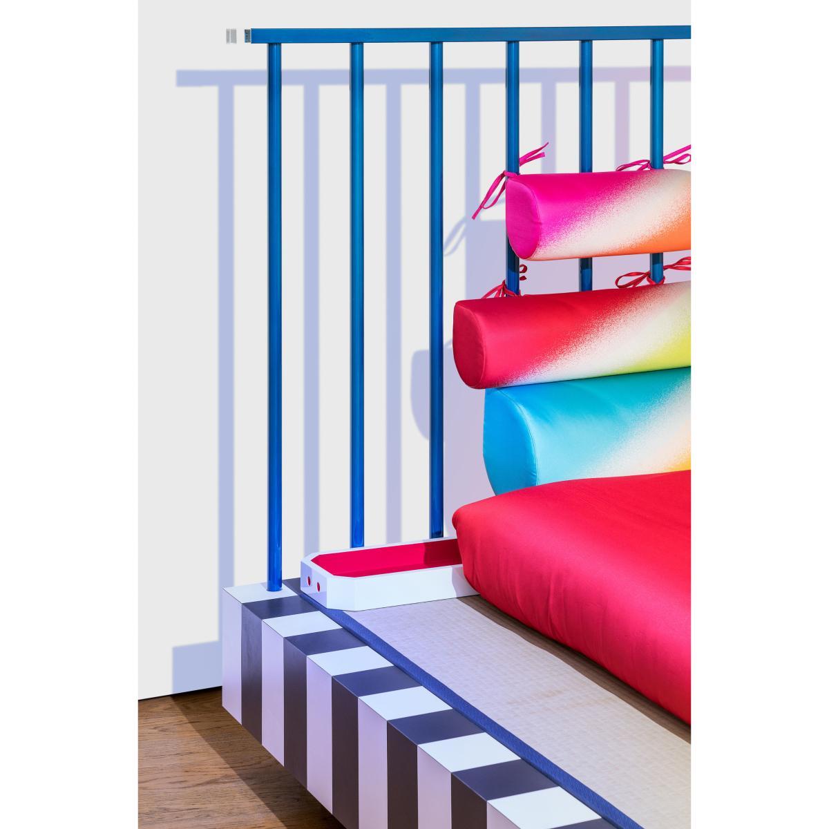 I love this bed frame because of its bold, colourful design-it's perfect for injecting a lively statement into modern or eclectic interiors. The stripes and multicoloured heads make it a versatile focal point, especially when paired with neutrals or simple textiles to let the frame stand out. It works well in contemporary spaces, playful guest rooms, or even a vibrant kids’ bedroom. Practical styling tips include keeping bedding minimal to highlight its graphic qualities or adding coordinating pops of colour through cushions and accessories. This piece is all about making a confident, artistic impact, so it’s best styled with a clean, uncluttered aesthetic to let its personality shine.
