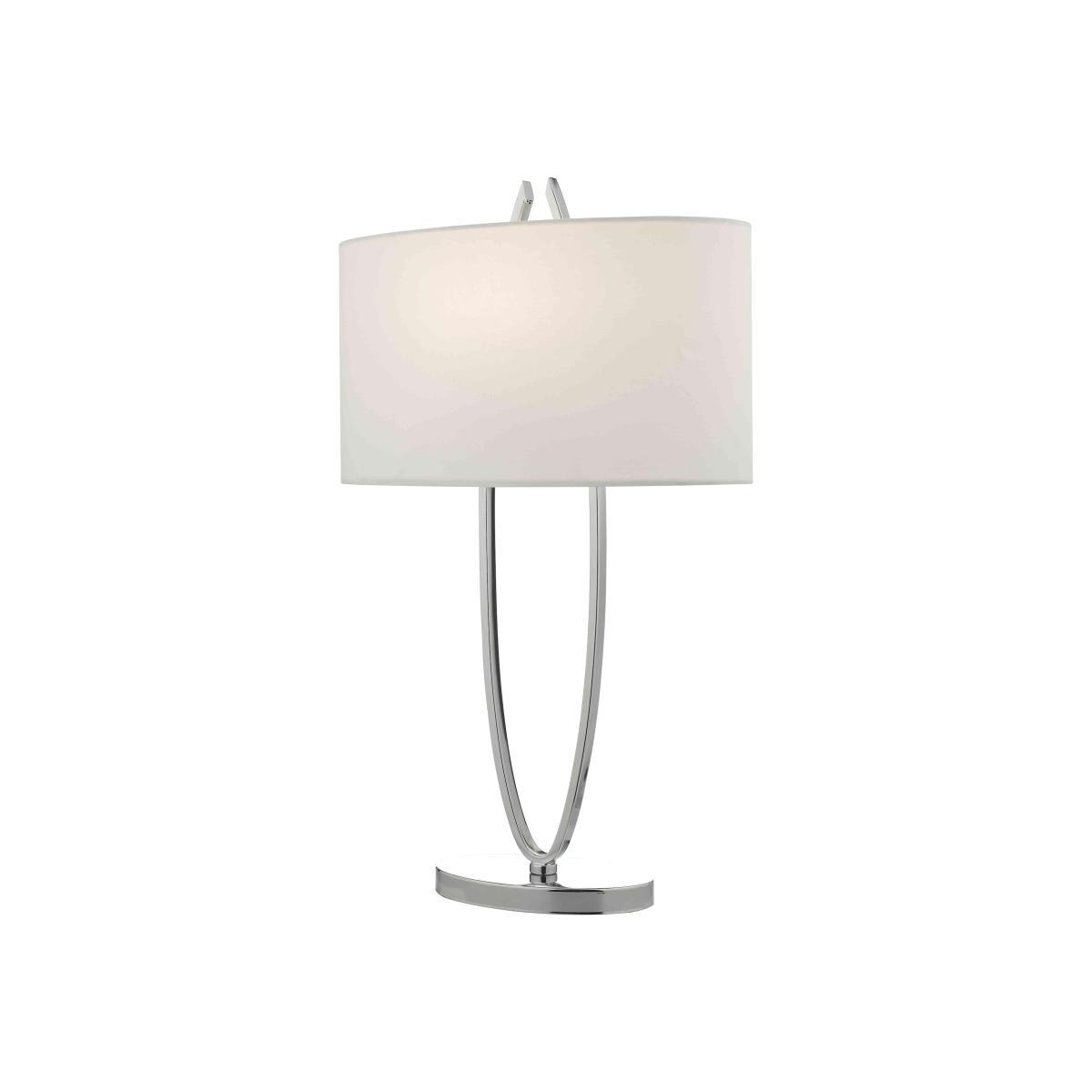 The sweeping metal frame of the Utara lamp, twisting in two directions, will make an eye-caching addition to your space. A lux feel is courtesy of the ivory faux silk shade. Why you’ll love it. Contemporary polished table lamp. Sweeping two-pronged metal frame. Smooth silk-like shade. Inline rocker switch for easy operation. Made with care for Furniture Village. What you need to know. Polished chrome frame. Ivory faux silk shade. 1 x 60W max ES GLS bulb recommended. Dimensions. Height: 56cm (22 in). Depth: 19cm (7 in). Width: 34cm (13 in).